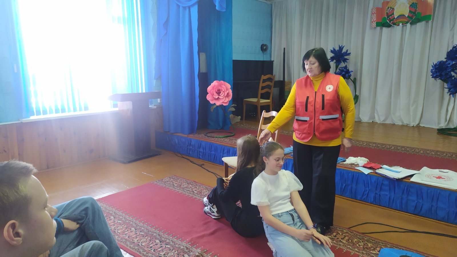 *для старшеклассников председатель РО БОКК Лариса Фролова провела практическое занятие «Алгоритм оказания первой помощи»;