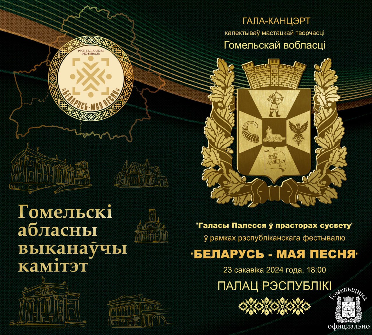 На главной сцене страны будет показано 19 номеров. Концертная программа, которую представят гомельчане, называется «Галасы Палесся ў прасторах сусвету». По задумке режиссера, ее сюжет будет основан на символах неглюбского рушника. Наблюдать за творческим действом в зале будут 2,5 тысячи зрителей.