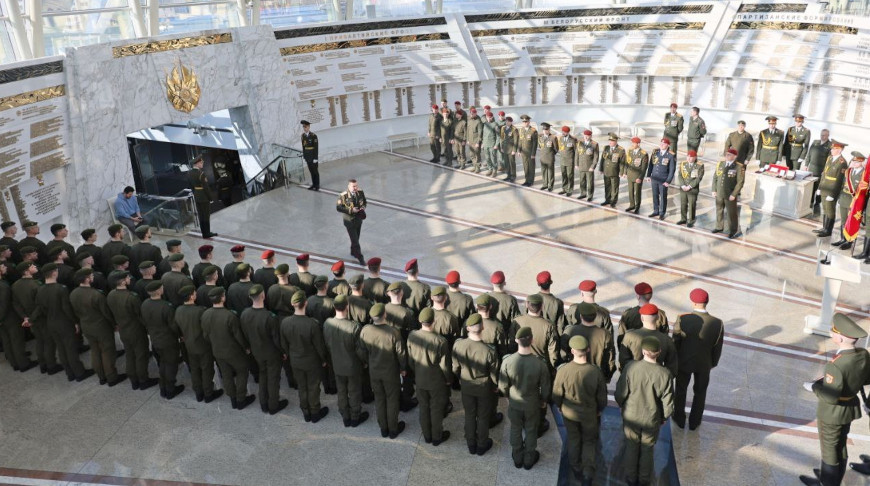 В эти минуты в Зале Победы музея истории Великой Отечественной войны начинается торжественный ритуал вручения боевого знамени войсковой части 5528 внутренних войск МВД. Участие в мероприятии принимает министр внутренних дел Иван Кубраков.