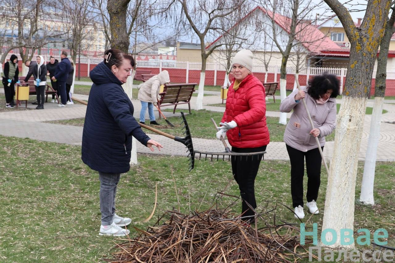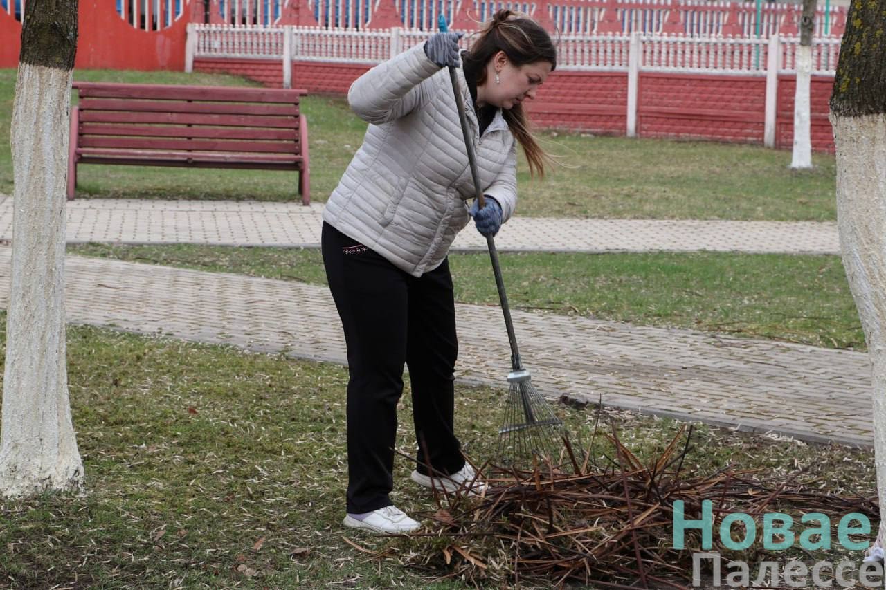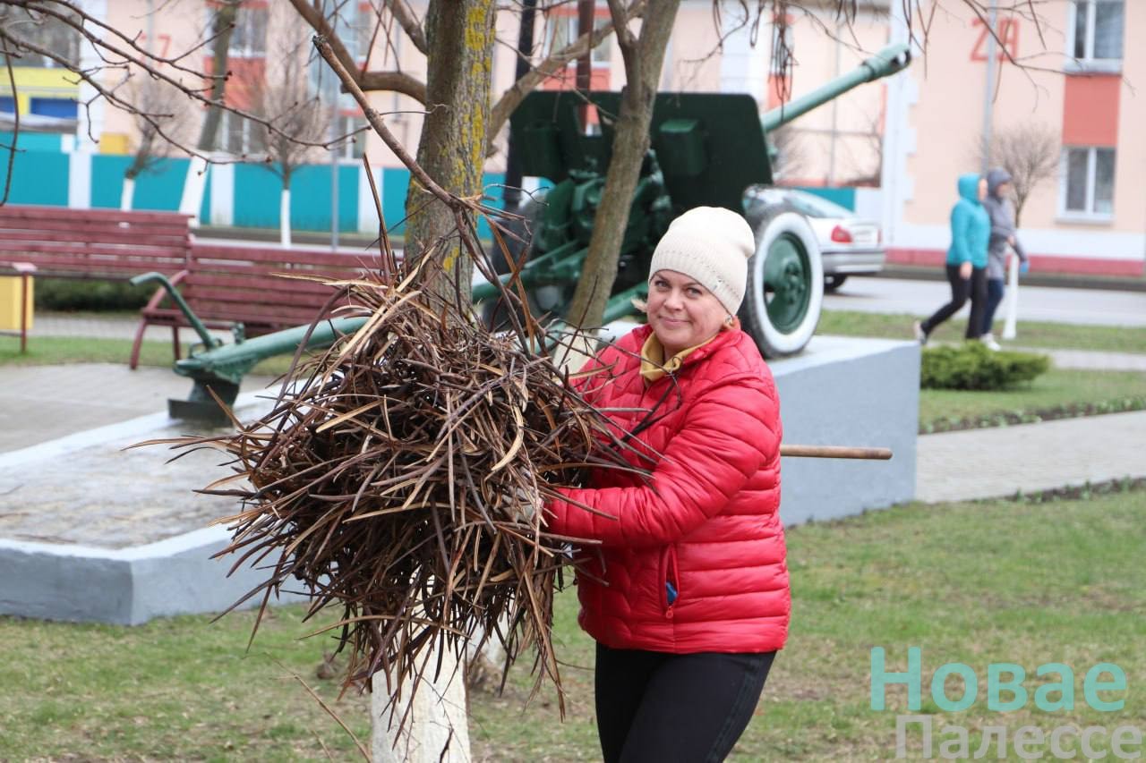 В сквере у памятника погибшим воинам Красной Армии и партизанам в рамках областного субботника за порядок взялись работники отделов и служб райисполколкома.