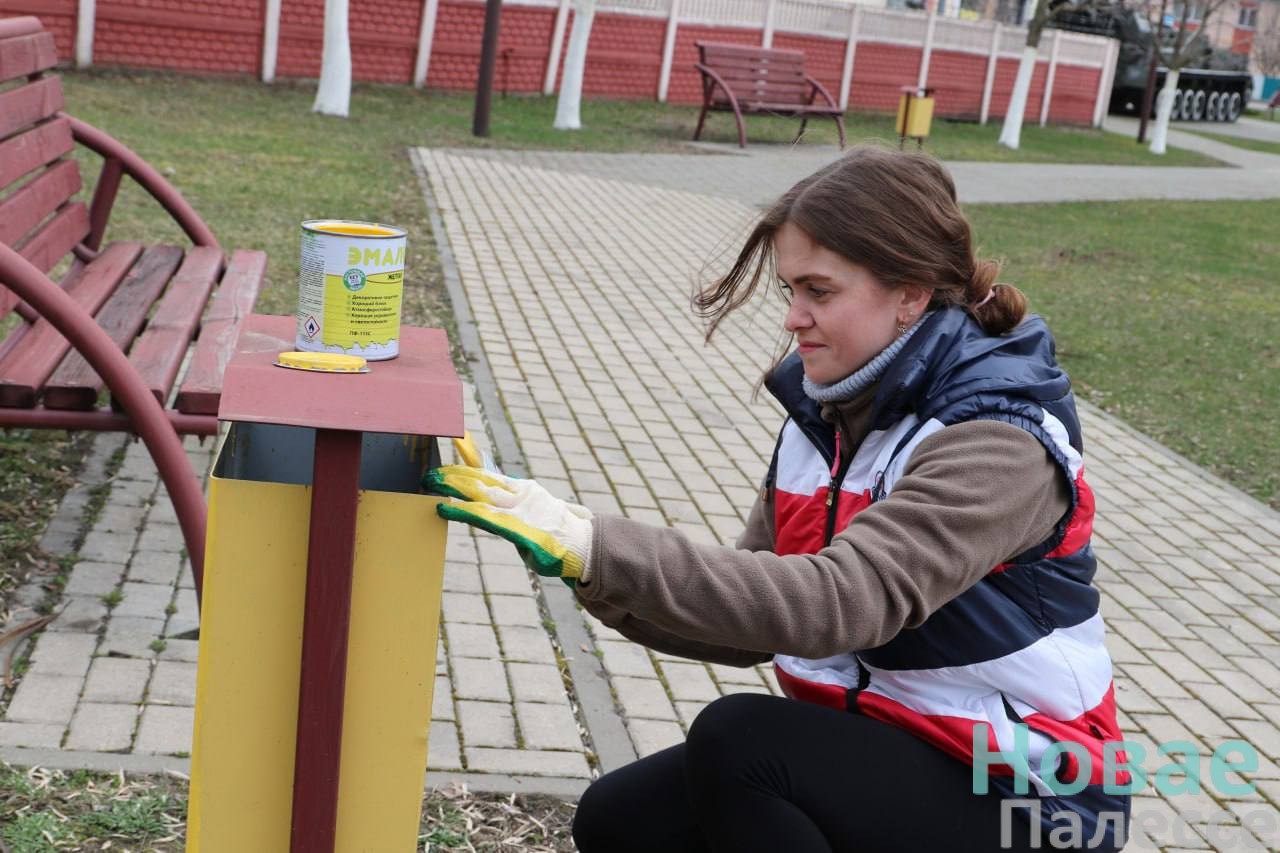 Старательно сгребли сухой мусор. После взялись за покраску скамеек и урн.