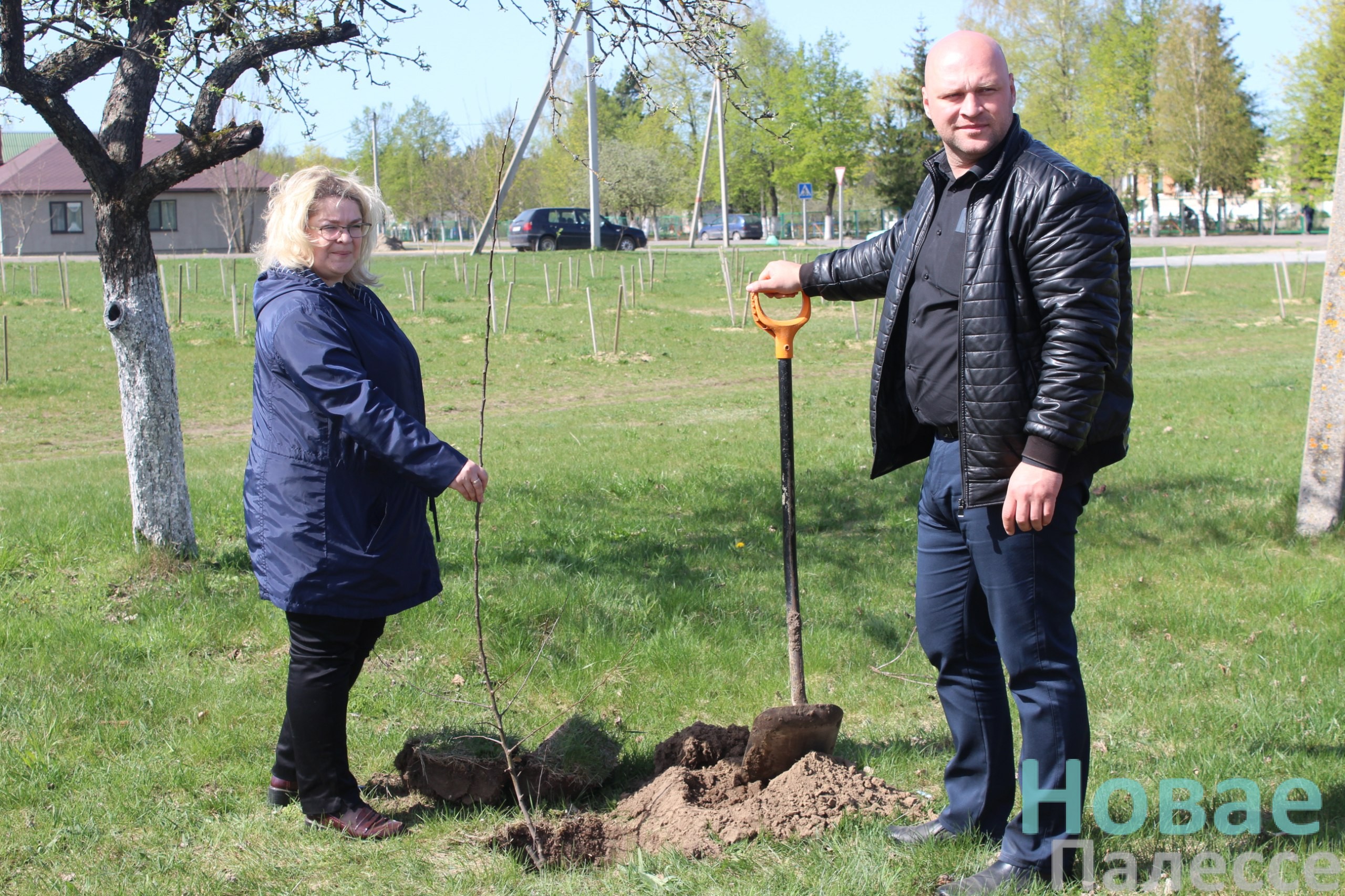 Сквер народного единства в агрогородке Ленин, на радость людям, пополнился яблоневым садом.
