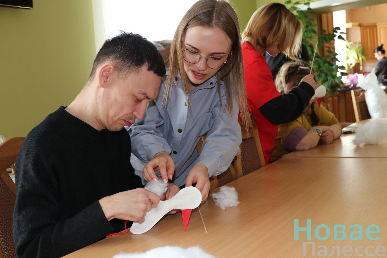 Немного предыстории. Несколько лет назад Виктория Вячеславовна случайно познакомилась с Вероникой Петрушей, инструктором по трудовой терапии ТЦСОН г. Кировска Могилёвской области. Приятельство переросло в профессиональную плоскость. Объединив усилия, эти женщины устроили в Житковичах первую встречу молодых людей с инвалидностью. А на днях гости снова посетили наш город. В территориальном центре развернулась совместная мастерская по изготовлению мягкой игрушки. Аиста – символа Беларуси – за одним столом делали и наши ребята, посещающие территориальный центр, и несколько их новых товарищей из другой области, а помогали им ученики второй школы. Так в неформальной обстановке сообща прекрасно провели время, получив позитивный заряд и понимание, что для дружбы даже двести километров не преграда.