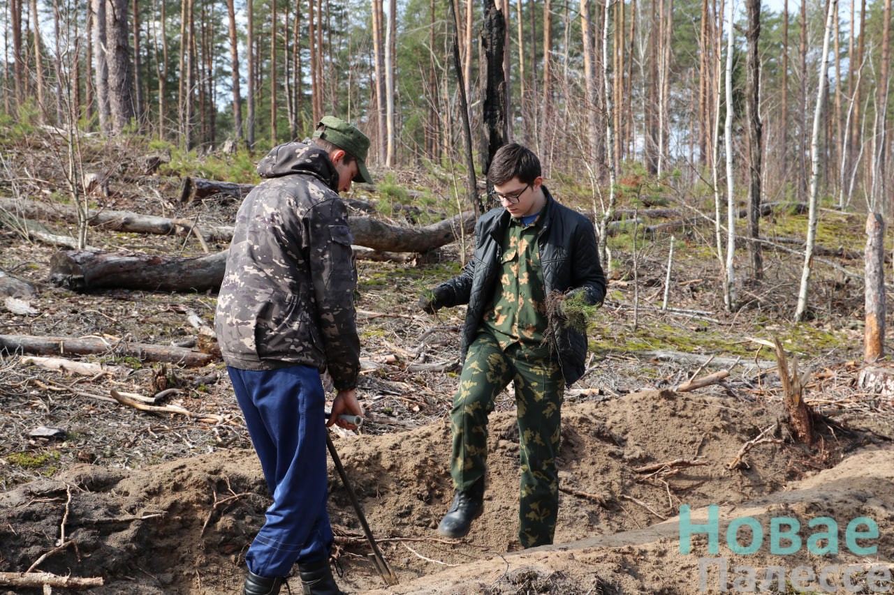 Вооружившись мечами Колесова, саженцами и позитивным настроением, участники принялись за работу. А она предстояла немаленькая, план составил 2,4 га молодых сосёнок. Даже погода подсобила в посадке, с утра увлажнила землю, что очень благоприятно для такого дела.