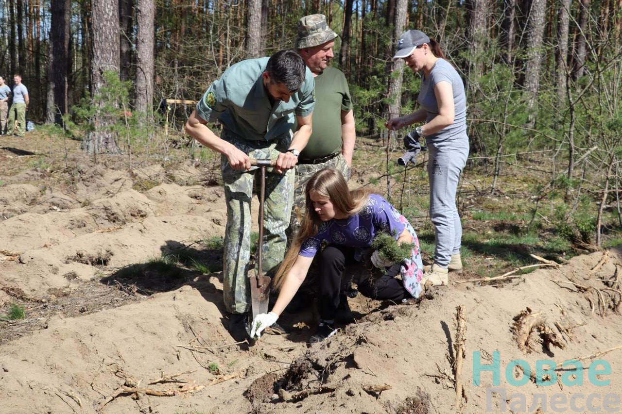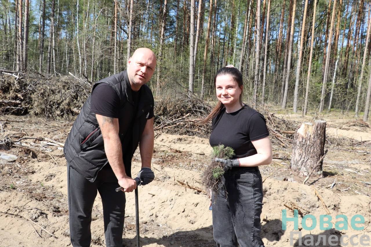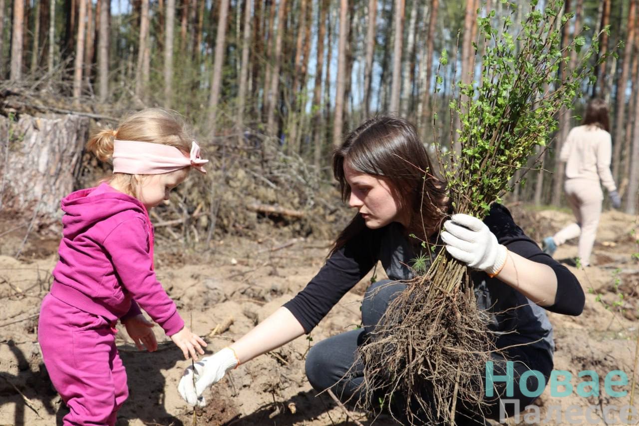 Буквально за полтора часа на площади 0,6 га появились саженцы сосны и березы.
