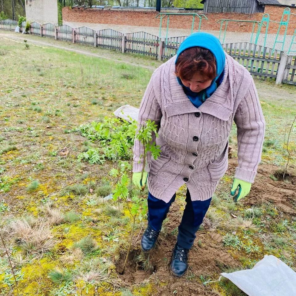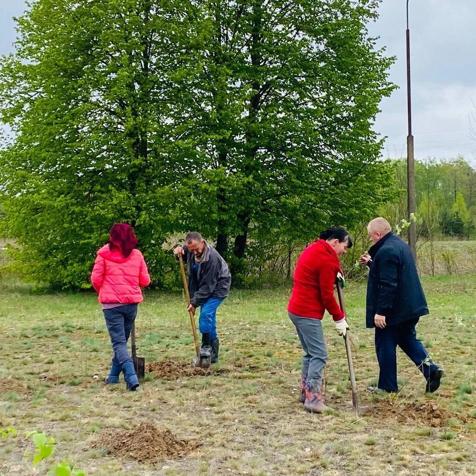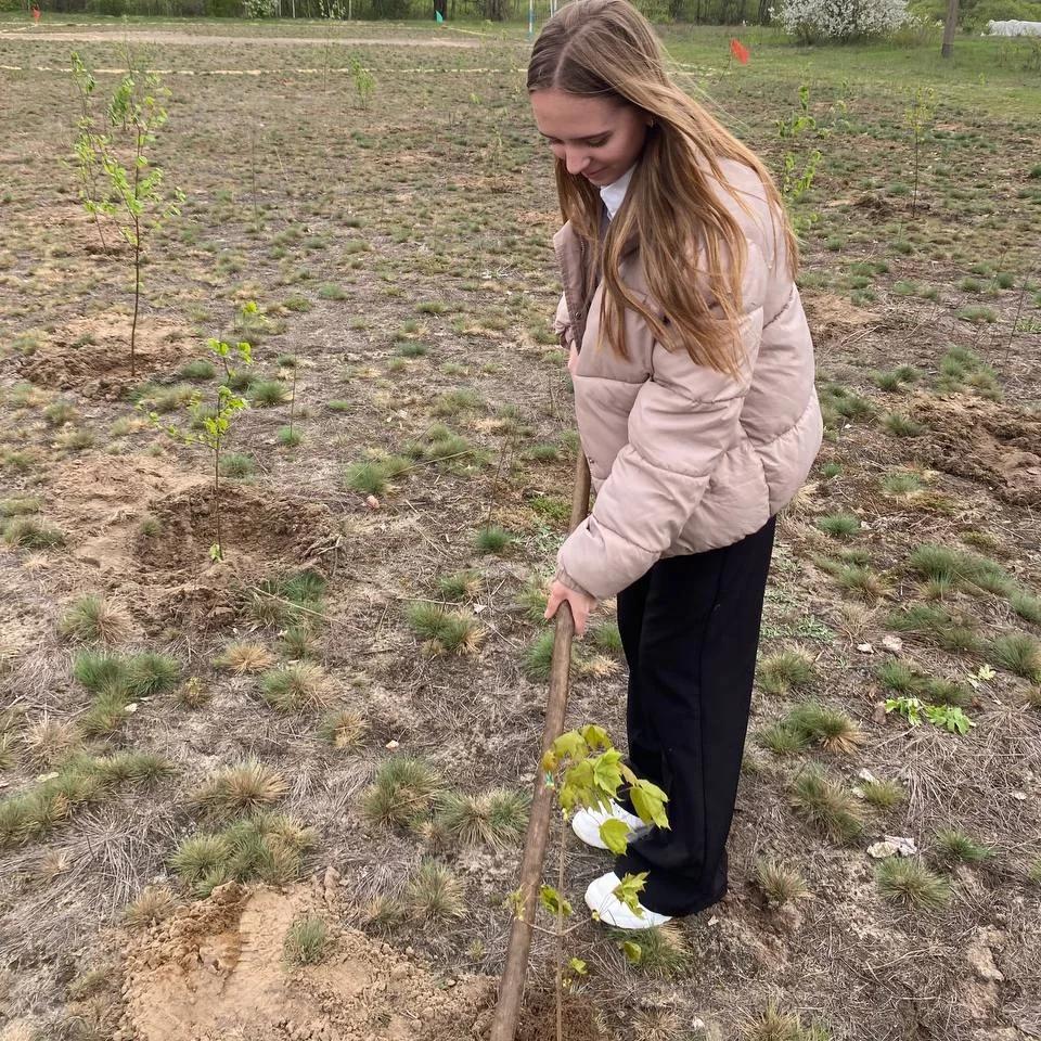 На территории своего учебного заведения общими усилиями ребята 5-10 классов вместе со взрослыми посадили 250 рябин, клёнов, берёз и дубов. Молодые деревца на доброе дело выделило Беловское лесничество.