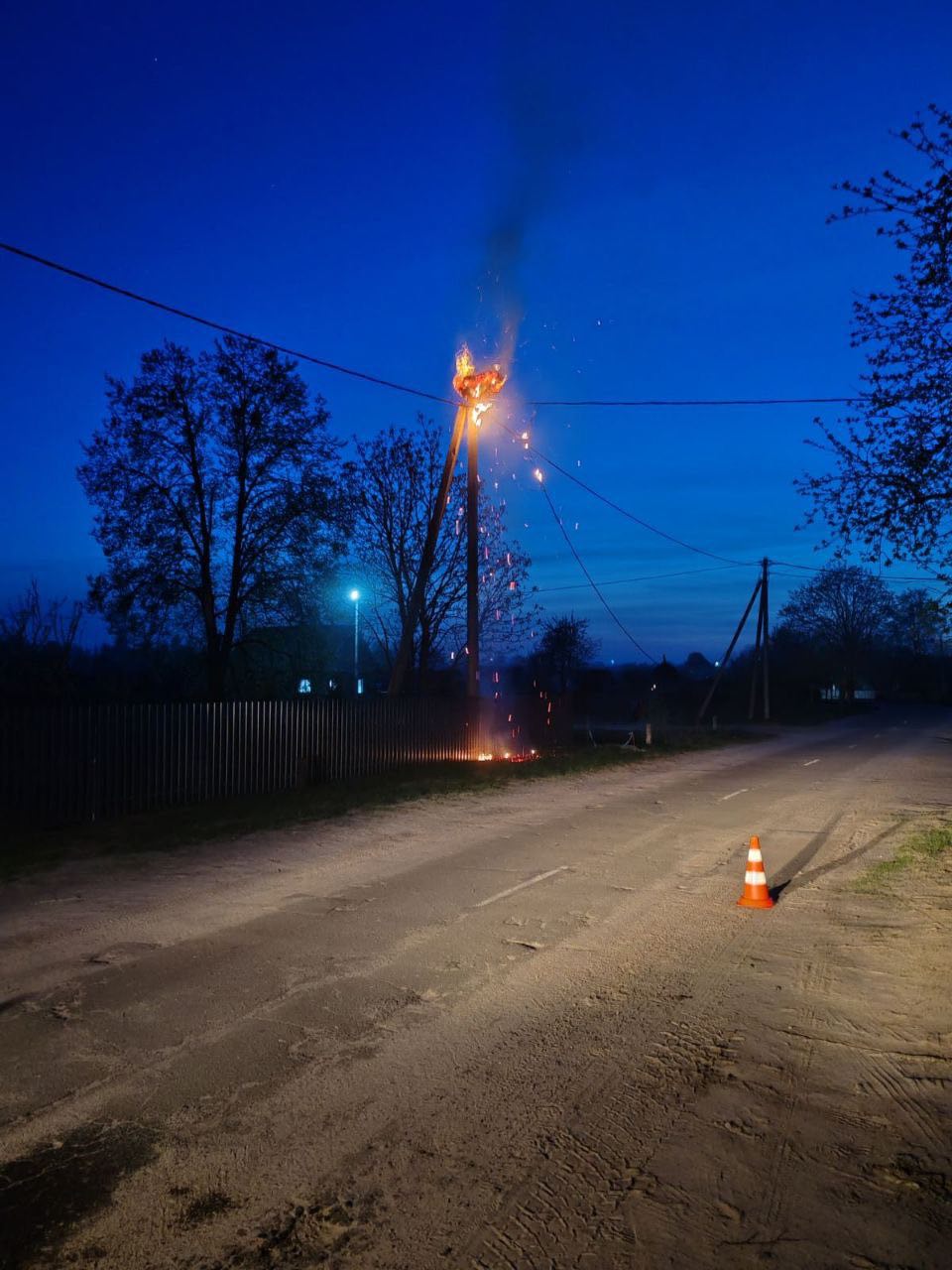 В агрогородке Семенча сегодня ночью всполыхнуло гнездо аистов, свитое на опоре электропередач.