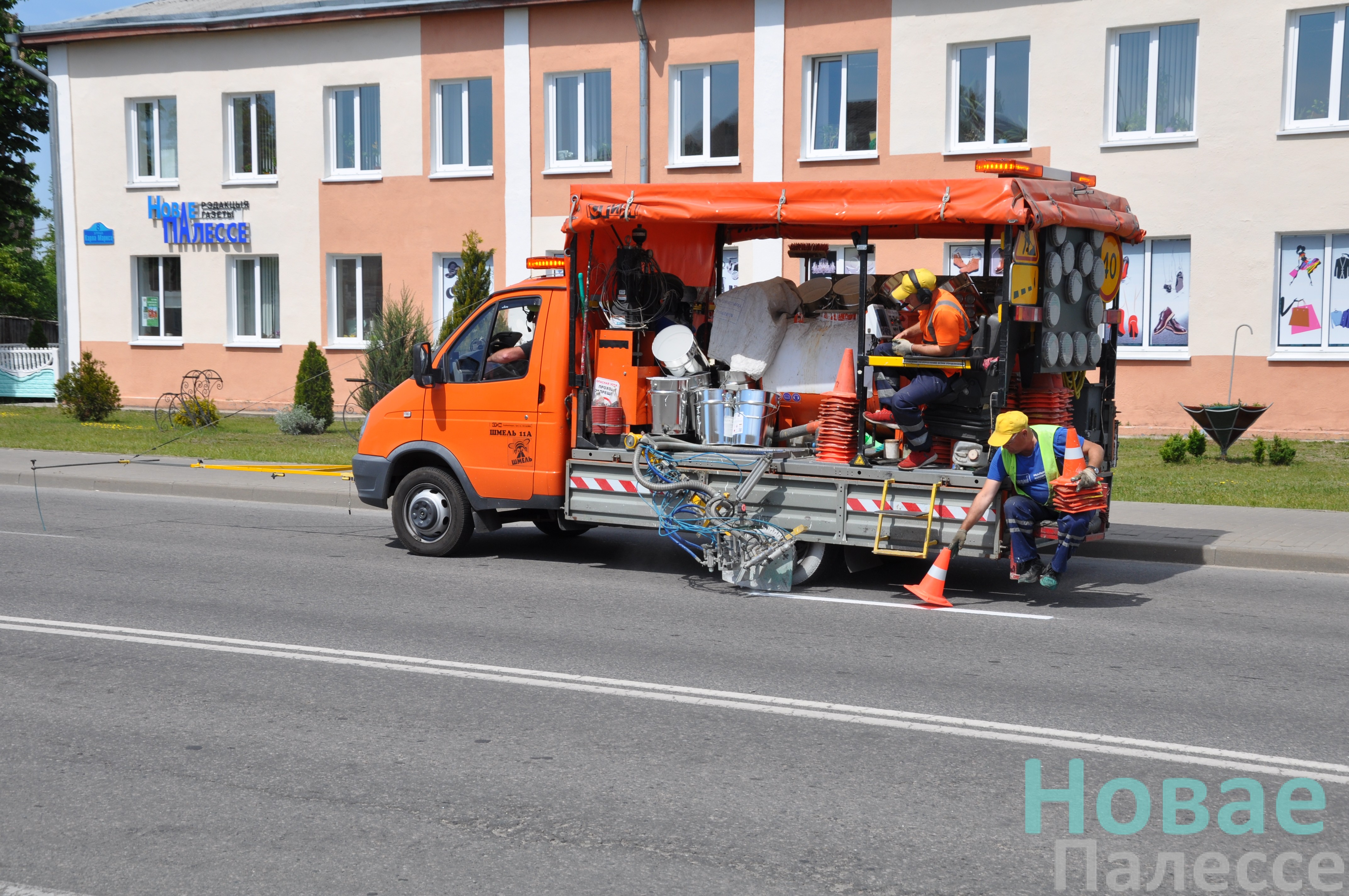 На улицах города можно заметить яркий автомобиль с оранжевыми проблесковыми маячками, наносящий линии на асфальт. Весь процесс осуществляет бригада из четырех человек: водитель, двое дорожных рабочих и оператор из КУП «Житковичский коммунальник»