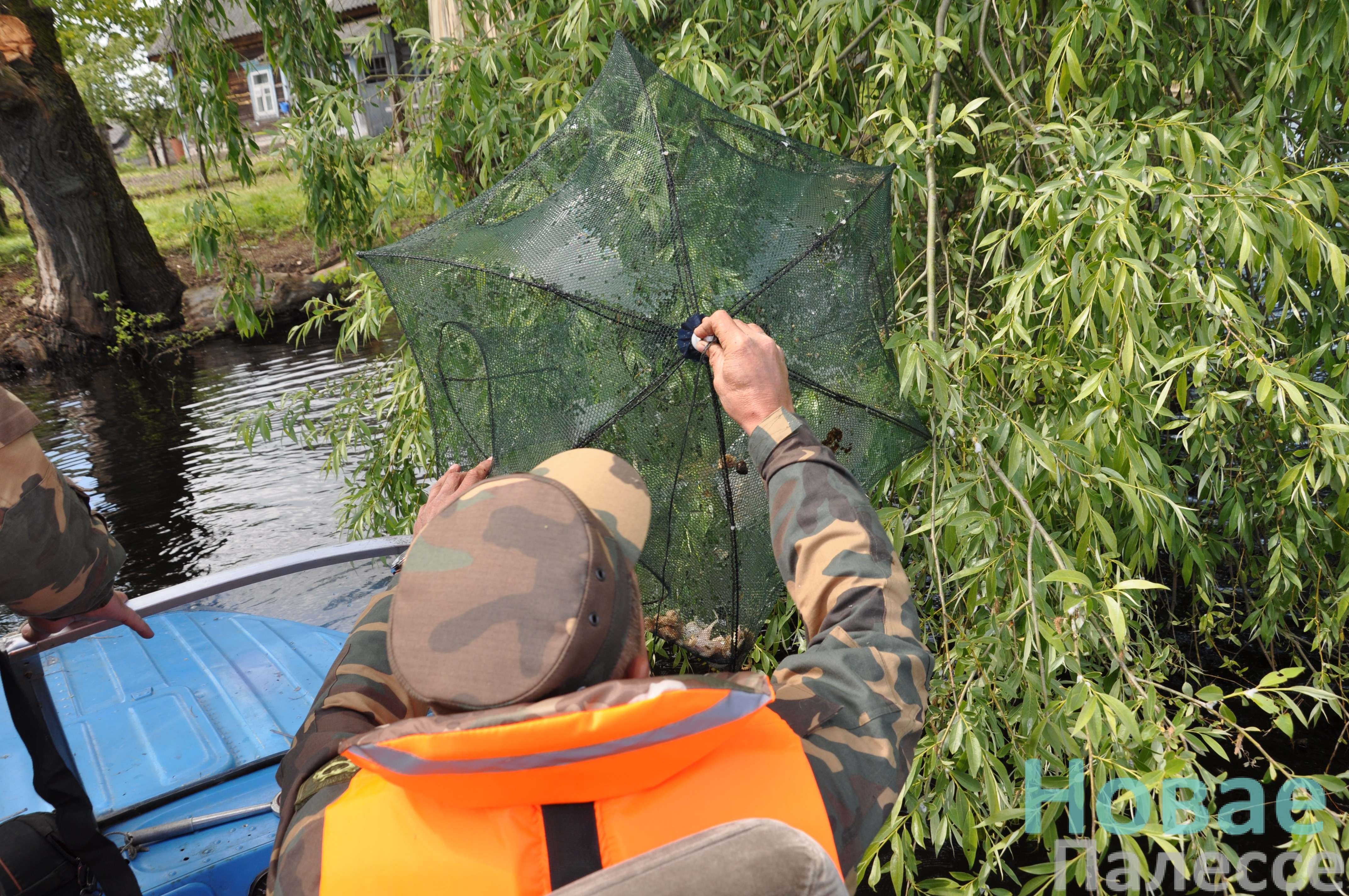 Возле деревни Погост, в старом русле реки, внимание привлекают пустые металлические пивные банки. Явно неспроста они находятся возле кустов. Подозрения оправдались, одна из них обозначала место, где установили «телевизор». Снасть с 2022 года не запрещена, но она размещена во время нерестового запрета. А это другое дело. Инспекторы спасли пять рыбёшек. Немного, но всё же.