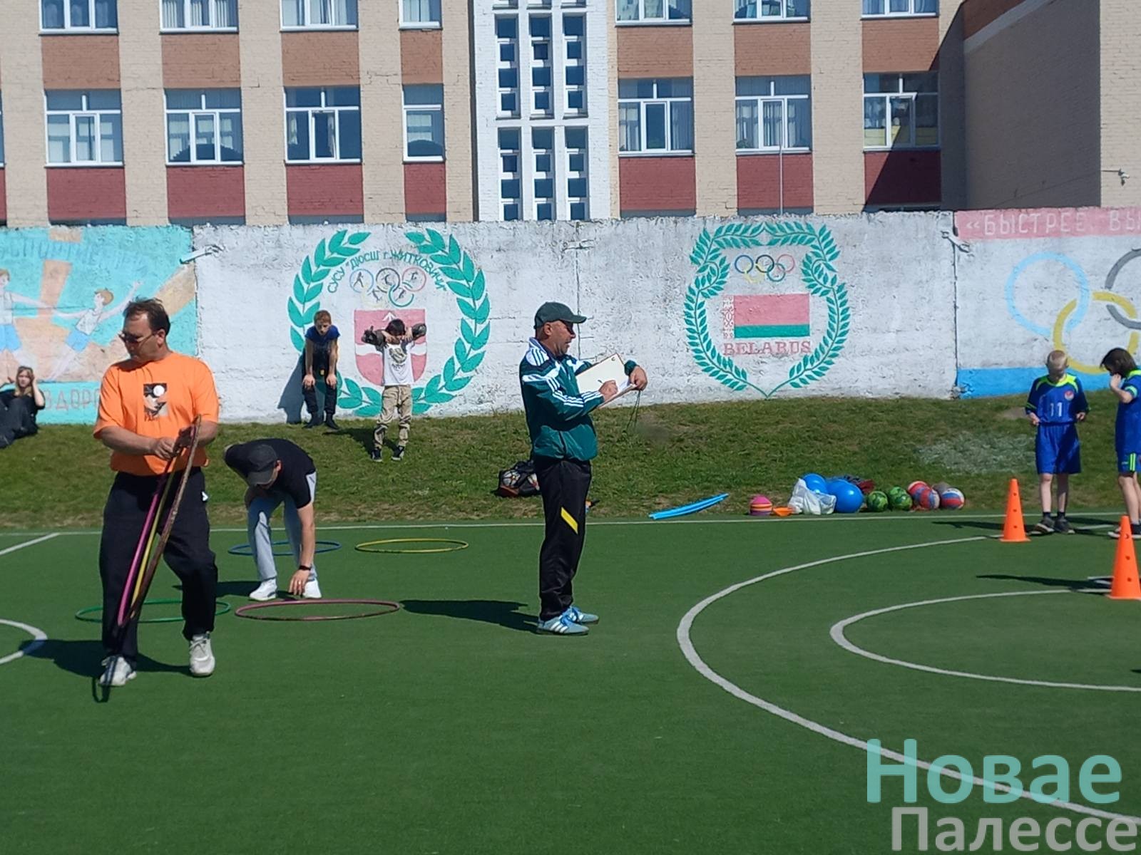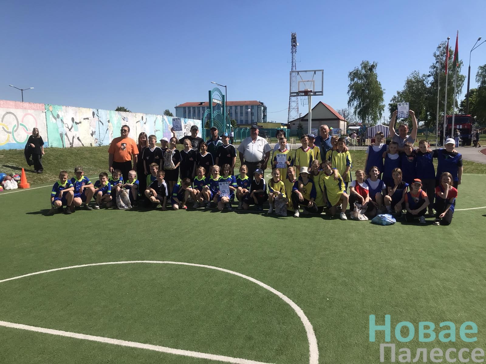 Четыре команды (5 мальчиков + 5 девочек) состязались в спортландии на стадионе.