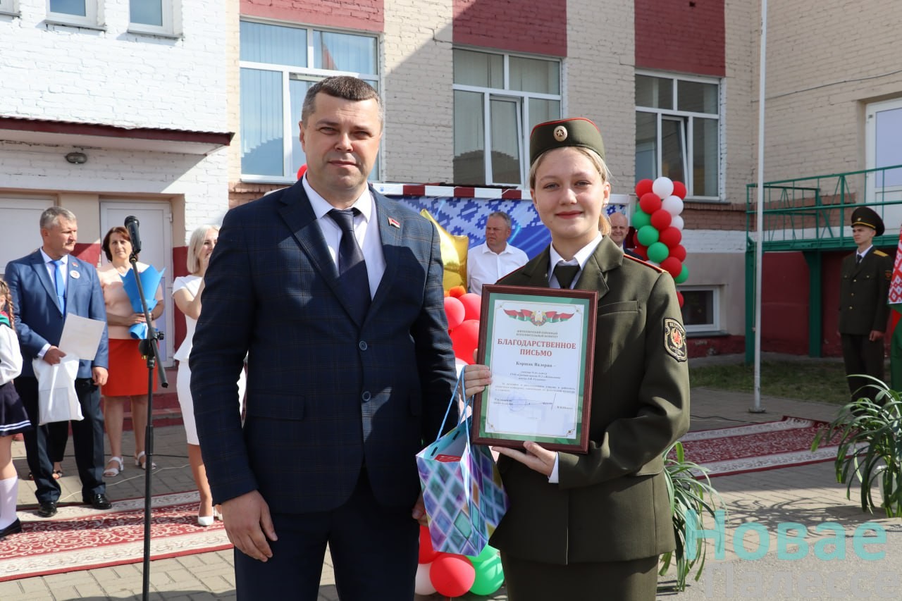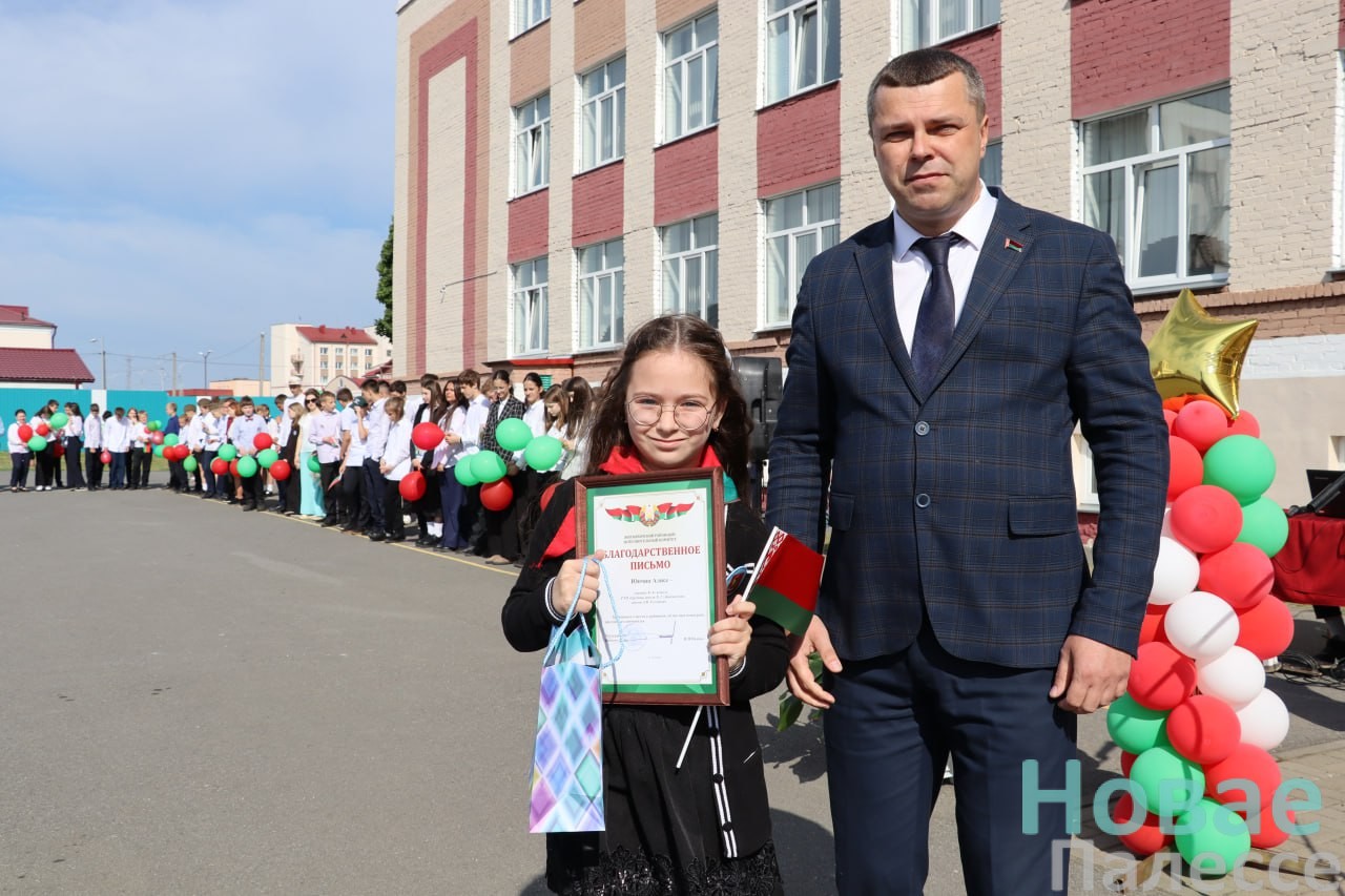 Школьников с успешным окончанием поздравил директор школы Александр Некрашевич. Как отметил Александр Фёдорович, в этом году учащиеся достойно представили школу на районных, областных и республиканских уровнях не только в предметных испытаниях, но и спортивных. Есть чем гордиться. Также не оставил без внимания и выпускников девятых классов и подбодрил ребят напутственным словом.