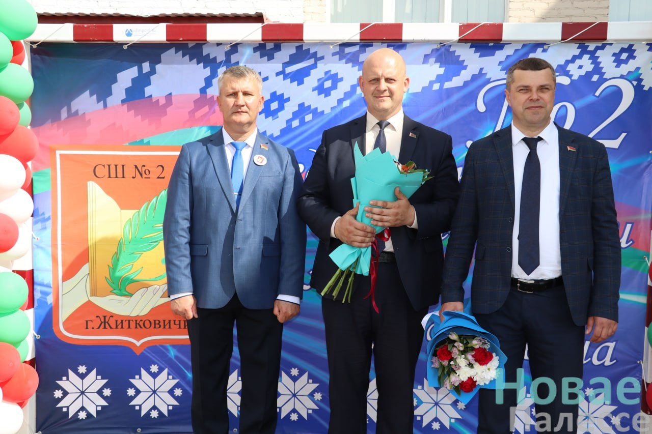 Сотни счастливых учеников и родителей пришли на последнее мероприятие этого учебного года. На линейку также пригласили гостей — председателя районного исполнительного комитета Николая Пьявко, начальника отдела образования Михаила Макаревича, директора ПМК-97 Вячеслава Масло, исполняющего обязанности директора ГЛХУ «Житковичский лесхоз» Якова Лисицкого.