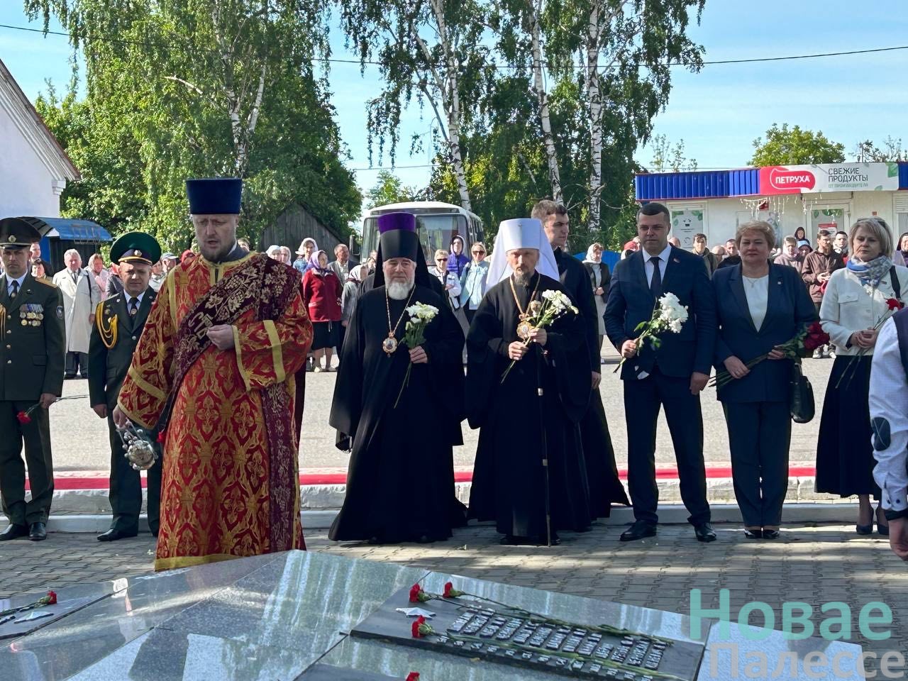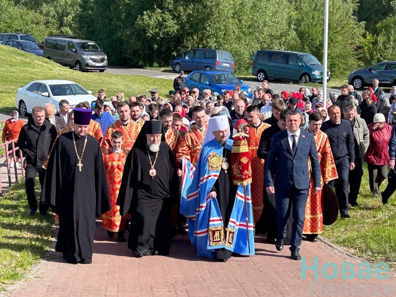 Епископат, духовенство, представители власти, прибывшие гости и паломники встречали Предстоятеля Белорусской Православной Церкви у памятника воинам Великой Отечественной войны, откуда крестным ходом проследовали к памятнику 1000-летия со дня основания Туровской епархии.