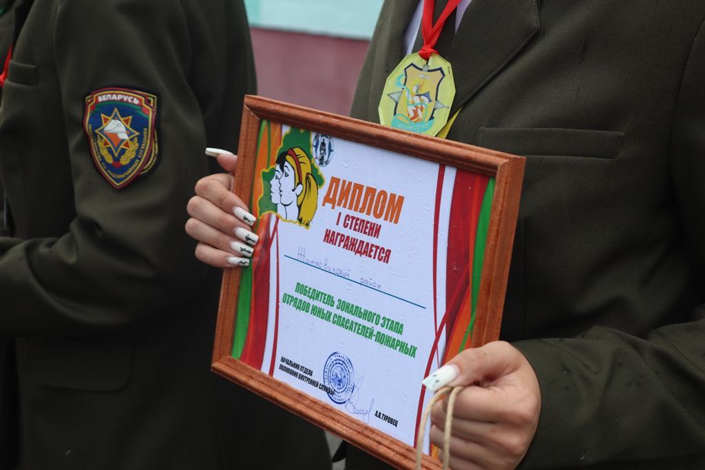 В конкурсах «Боевое развертывание» и «Установка туристической палатки». Юные спасатели выполняли совсем не детский норматив, а именно надеть боевую одежду спасателя, соединить рукава, и подать воду. Здесь победу одержала команда Наровлянского района. Эти ребята показали себя и в конкурсе знания медицинской подготовки.