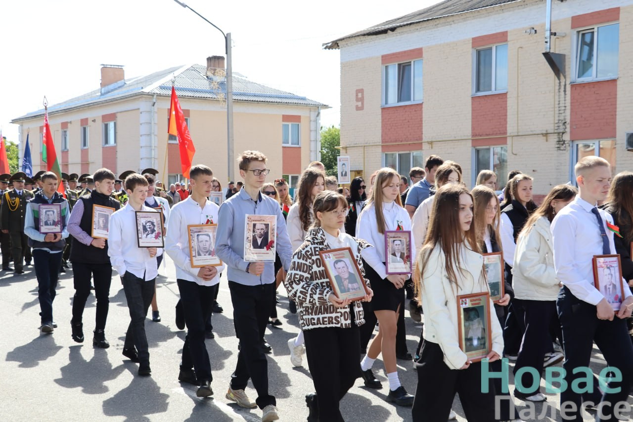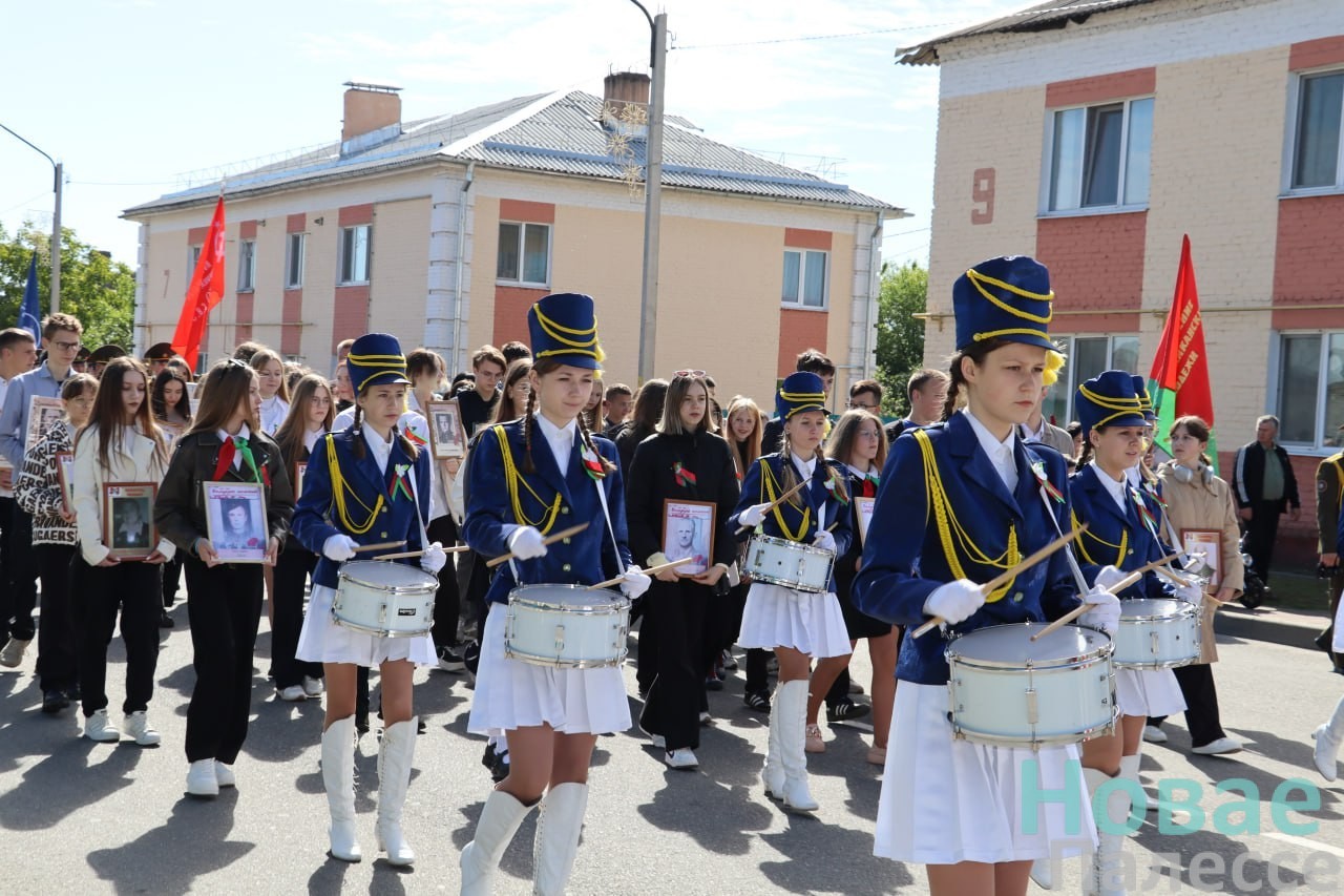 Дзесяць гадзін раніцы. Святочная калона прадстаўнікоў ўлады, дэпутатаў, членаў працоўных калектываў і грамадскіх аб’яднанняў начынае рух на вуліцы Карла Маркса. Сімвалічна, што ўзначальвае яе моладзь. У першых шэрагах самыя юныя нашчадкі вызваліцеляў – дашкольнікі, за якімі маршам крочыць аркестр барабаншчыц. Следам вучні нясуць партрэты сваіх продкаў.