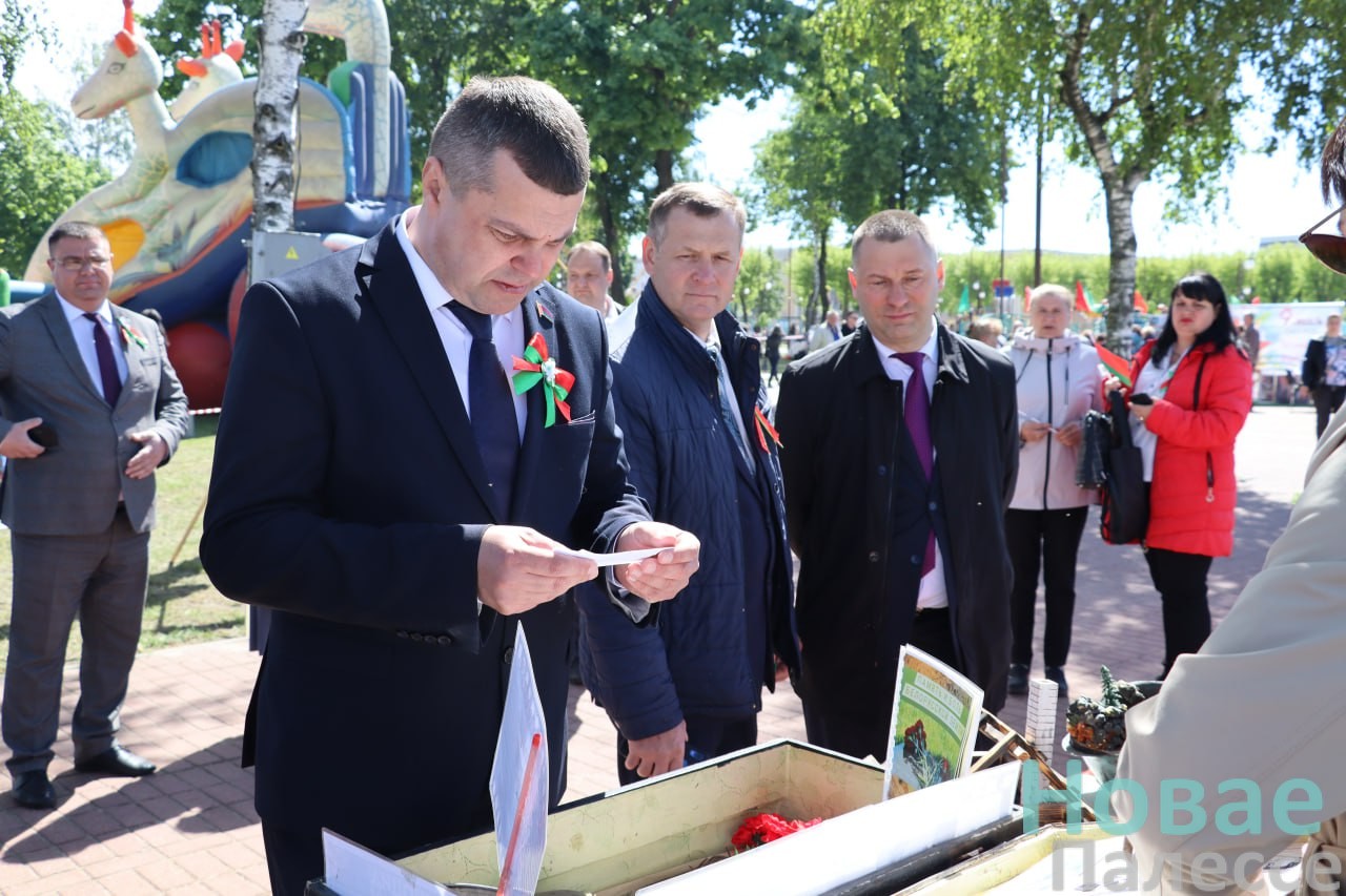 Пасля мітынгу ў скверы Здароўя кіраўніцтва райвыканкама сумесна з членамі савета ветэранаў і прадстаўнікамі грамадскасці пасадзілі пладовыя дрэвы. Дзевяць яблынь, якія прывезлі з ААТ “Тураўшчына”, нагадваюць пра свяшчэнную дату. Кветка гэтага дрэва стала сімвалам новых мірных перамог суверэннай Беларусі, што адлюстравана ў бутаньерцы, якая ўпрыгожвае грудзі суайчыннікаў 9 Мая.