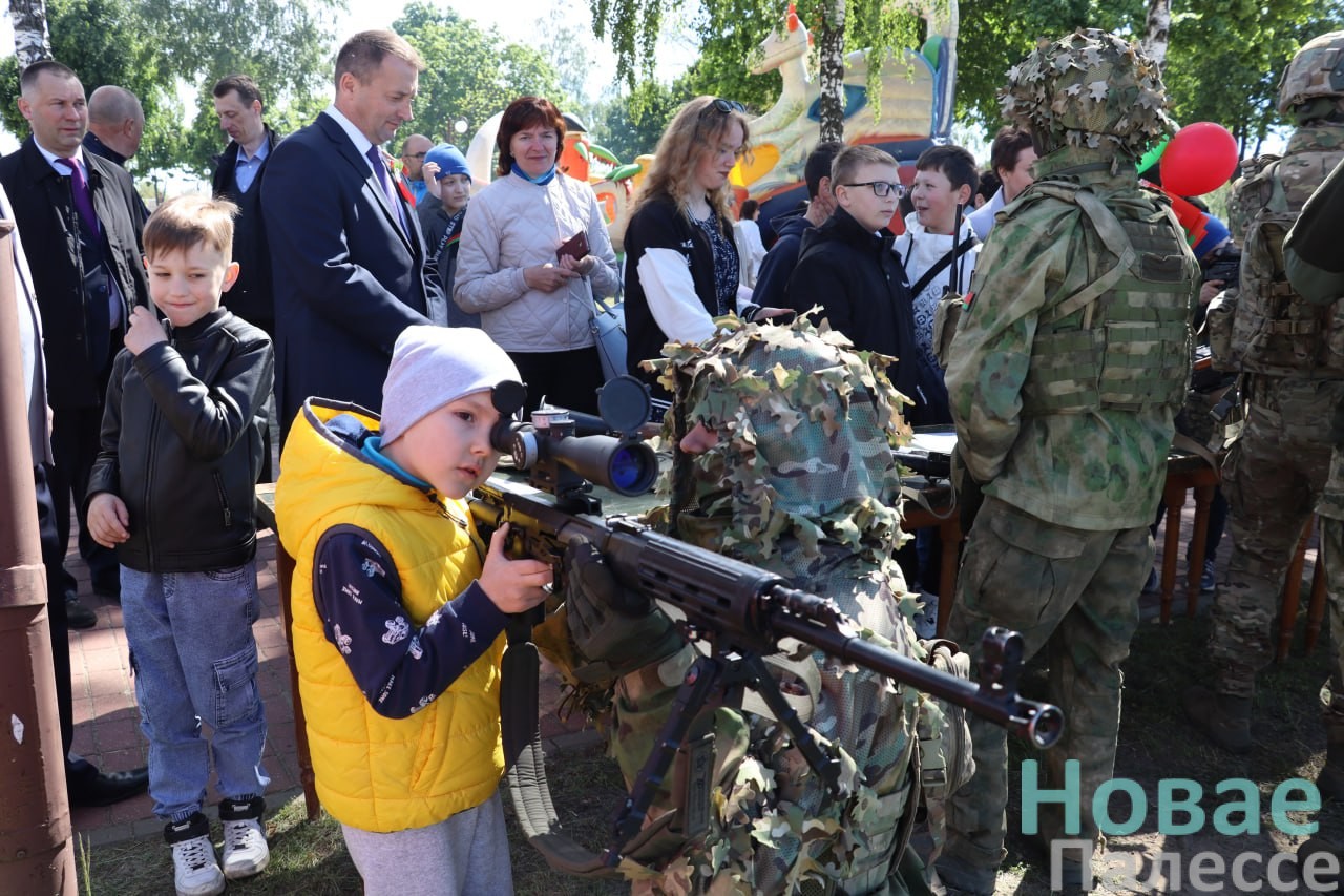 На алеях парка імя Міколы Гамолкі разгарнуліся тэматычныя выставы, падрыхтаваныя ўстановамі адукацыі і культуры. Нямала людзей назіралася ля прэзентацыйнай пляцоўкі сіл спецаперацый. Спадабалася яна і шасцікласніку Івану Гарошку, які захапляецца тэмай зброі. Патрымаць пісталет ці аўтамат, паслухаць ваенных юнаку заўжды цікава.