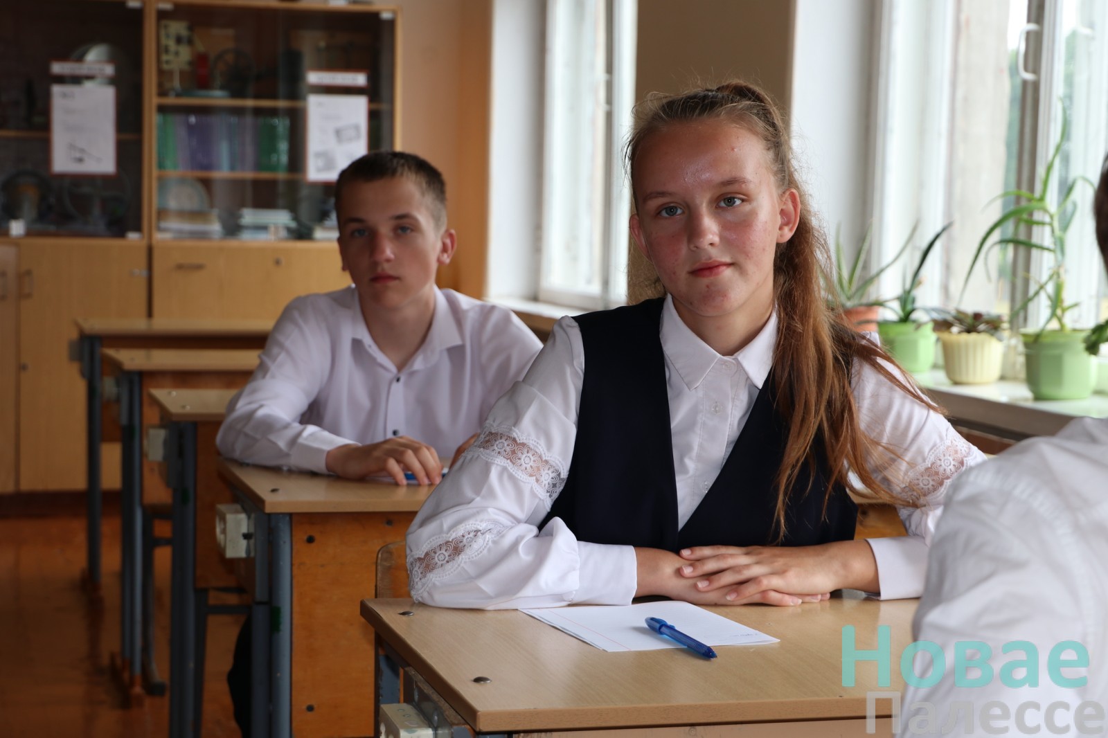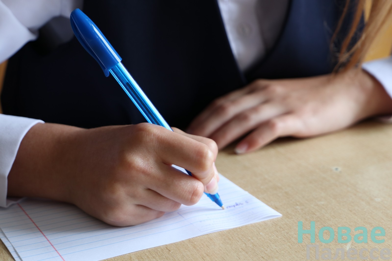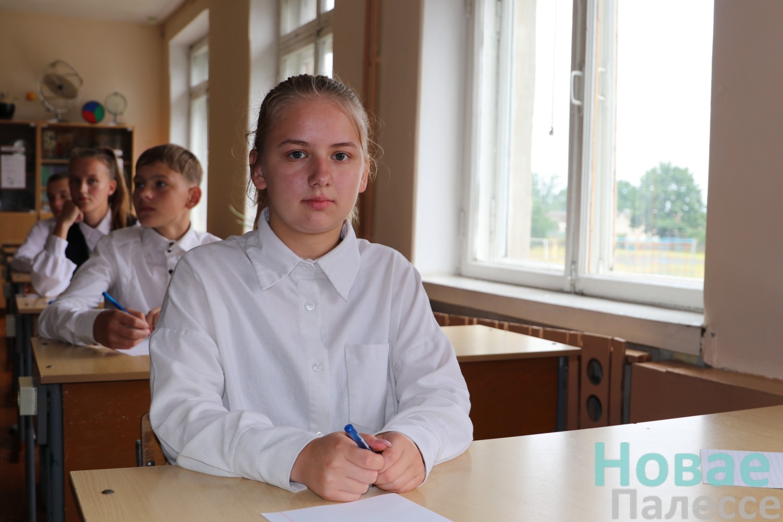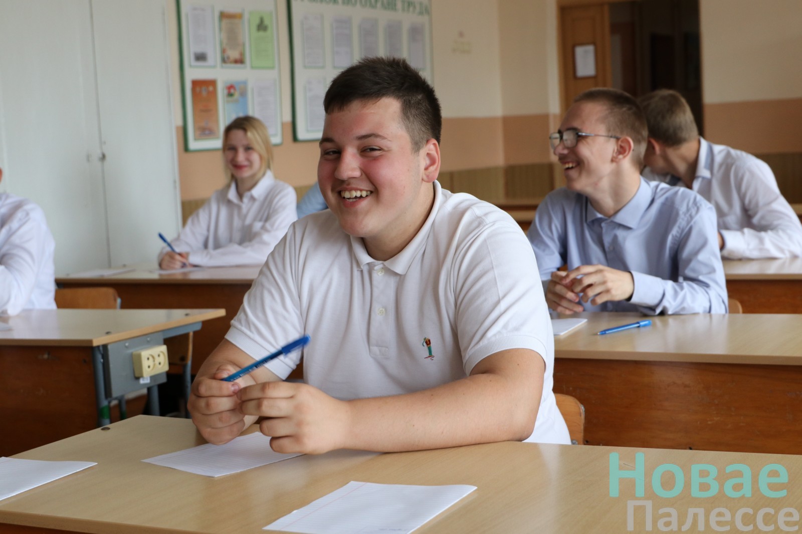 Сёння ў Людзяневіцкай сярэдняй школе пісалі пераказ па беларускай мове. У белых кашулях, засяроджаныя і ўрачыстыя за паўгадзіны да дзявятай 12 юнакоў і дзяўчат (адзін чалавек па стану здароўя вызвалены) рассаджваюцца па сваіх месцах. На дошцы – узор запаўнення тытульнай старонкі кантрольнай работы. Фонам гаворыць тэлевізар, па якому хутка аб’явяць варыянты тэксту. На адным са сталоў — скрыня з мабільнымі тэлефонамі вучняў, побач – бутэлькі з пітной вадой.