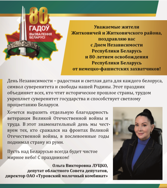 Общество Депутат областного Совета депутатов, директор ОАО «Туровский молочный комбинат» Ольга Луцко поздравляет с Днём независимости 03.07.2024 176 Новае Палессе 0 Comment