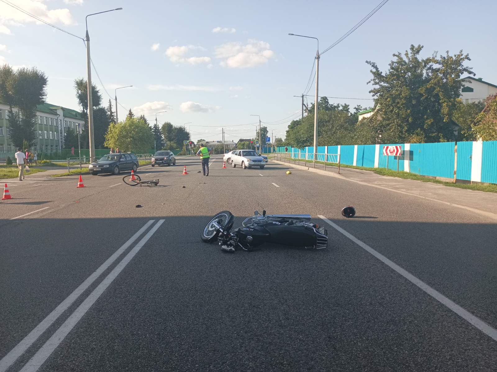 В субботу примерно в 17 часов 35 минут 16-летний водитель, управляя мотоциклом «Минск», двигаясь по улице Социалистическая, совершил наезд на 40-летнего велосипедиста, который, предварительно, находясь в состоянии алкогольного опьянения, пересекал проезжую часть дороги вне пешеходного перехода. В результате происшествия велосипедист с травмами госпитализирован в больницу.