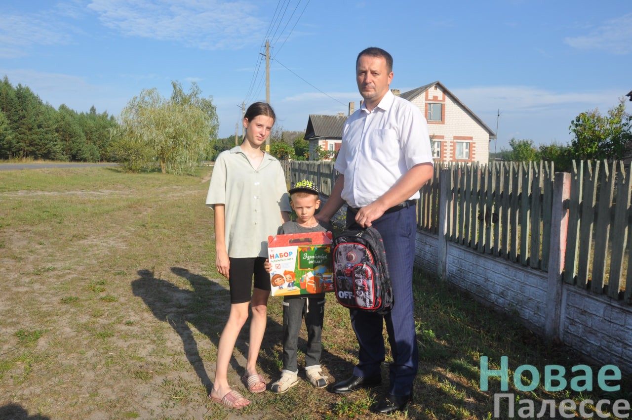 Председатель районного Совета депутатов Леонид Волотовский вручил будущему первокласснику Захару Шираю рюкзак со всеми необходимыми канцелярскими принадлежностями.