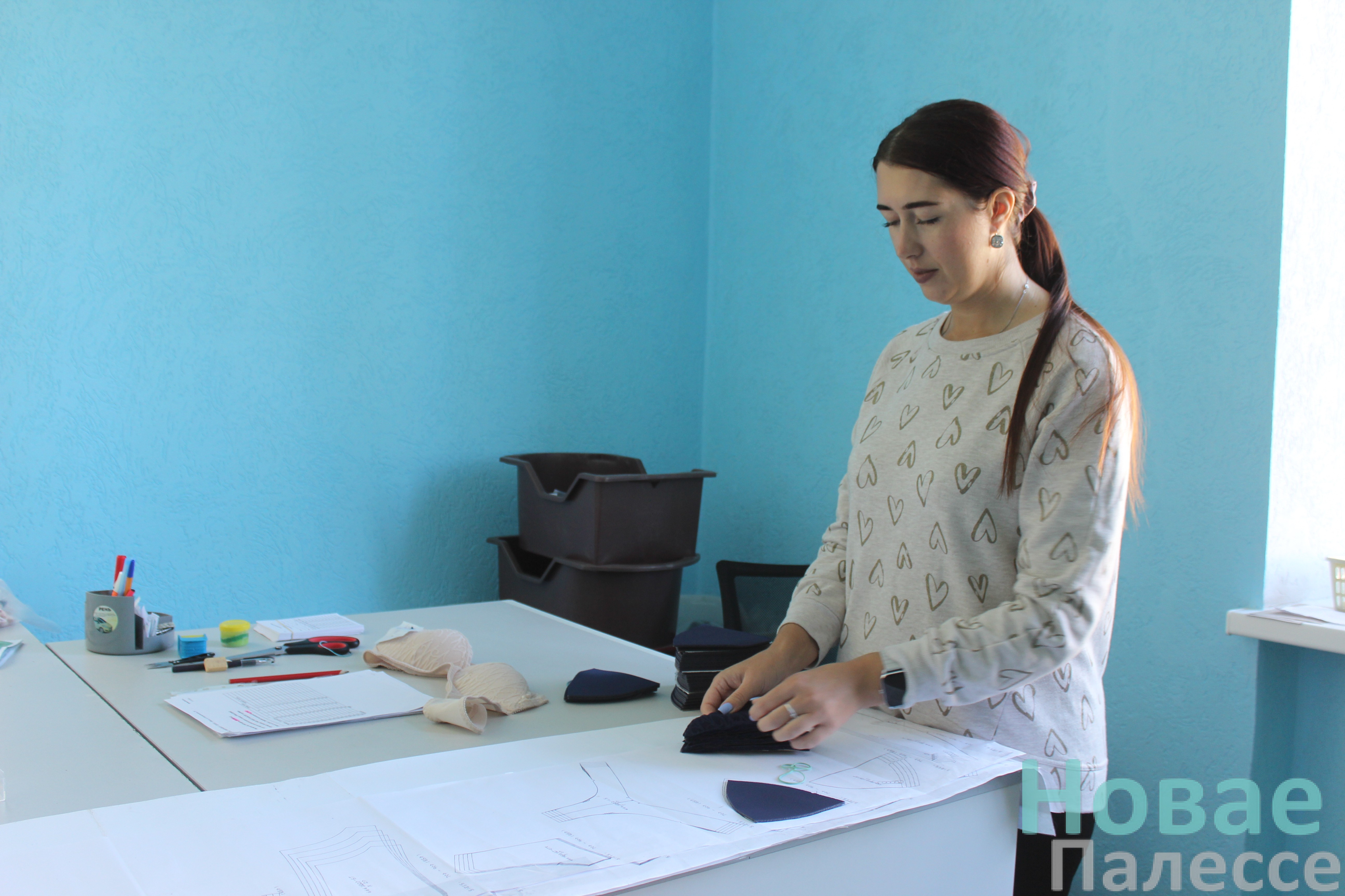 — В мою задачу входит формирование раскроя, он поступает из Минска. Подбираю по 20 единиц, проверяю ротацию, чёткость, чтобы всё сходилось по размерам и деталям. Точно сверяю с чертежами. Именно с моего «отдела» стартует процесс, в котором очень важно всё вплоть до тона ниток и линейности шва.