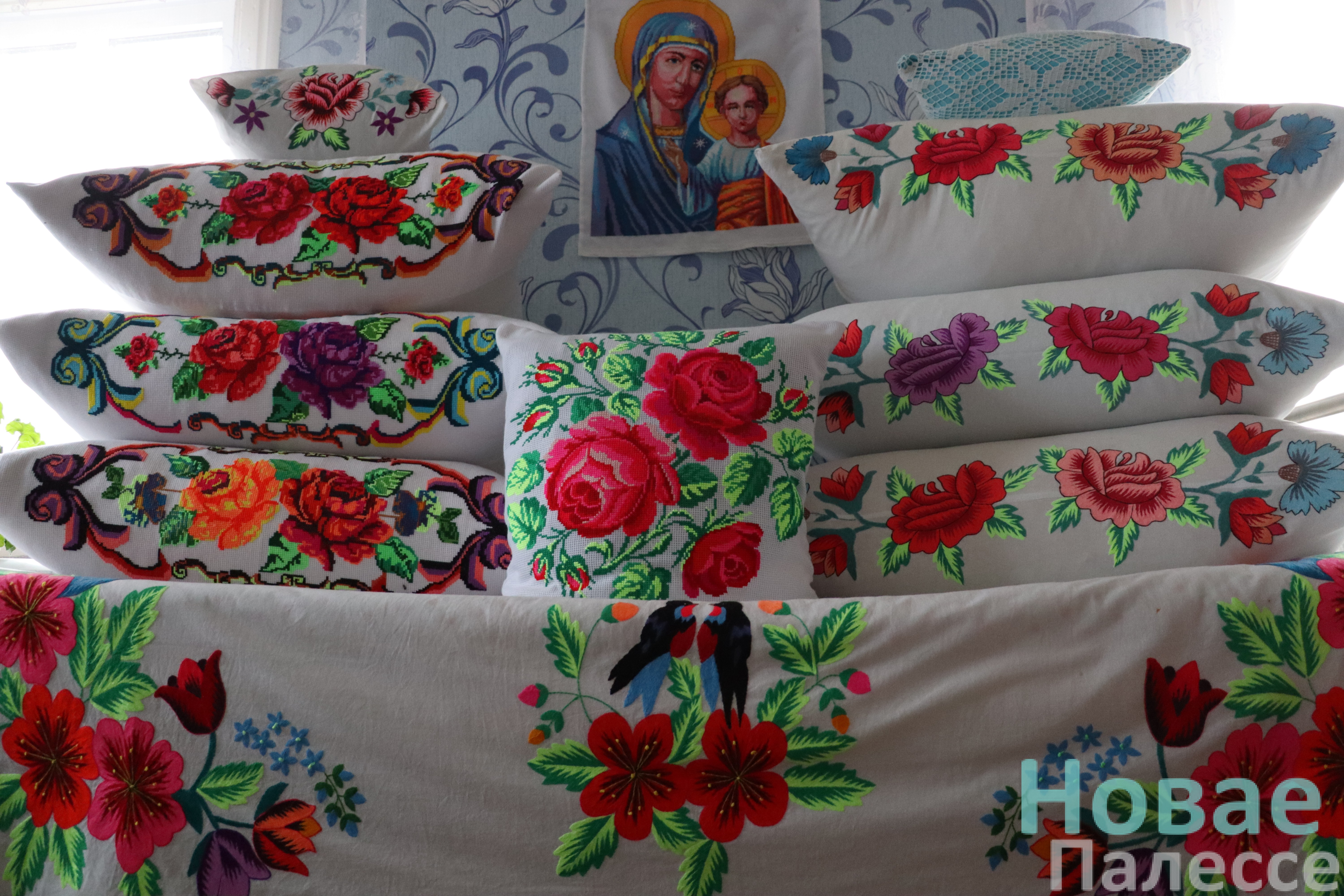 К домику Ольги и Николая Гавриловичей мы почти километр едем по той самой безлюдной улице. Супруги в декабре отметят 55 лет семейной жизни. Всякое бывало, говорит знатная рукодельница-хозяйка, в доме которой ярко и светло от искусно вышитых покрывал, штор, подушек. Даже обои, пусть и холодных оттенков, но в узорах-цветах. Но в целом муж хоть и выпивал (не тот ли самогон, что кому-то приносил дивиденды?), работу в леспромхозе и по дому знал. Ревновал, жалуется Ольга Михайловна, ещё и пять лет назад. Сегодня супругу 85, жена на 10 лет моложе.