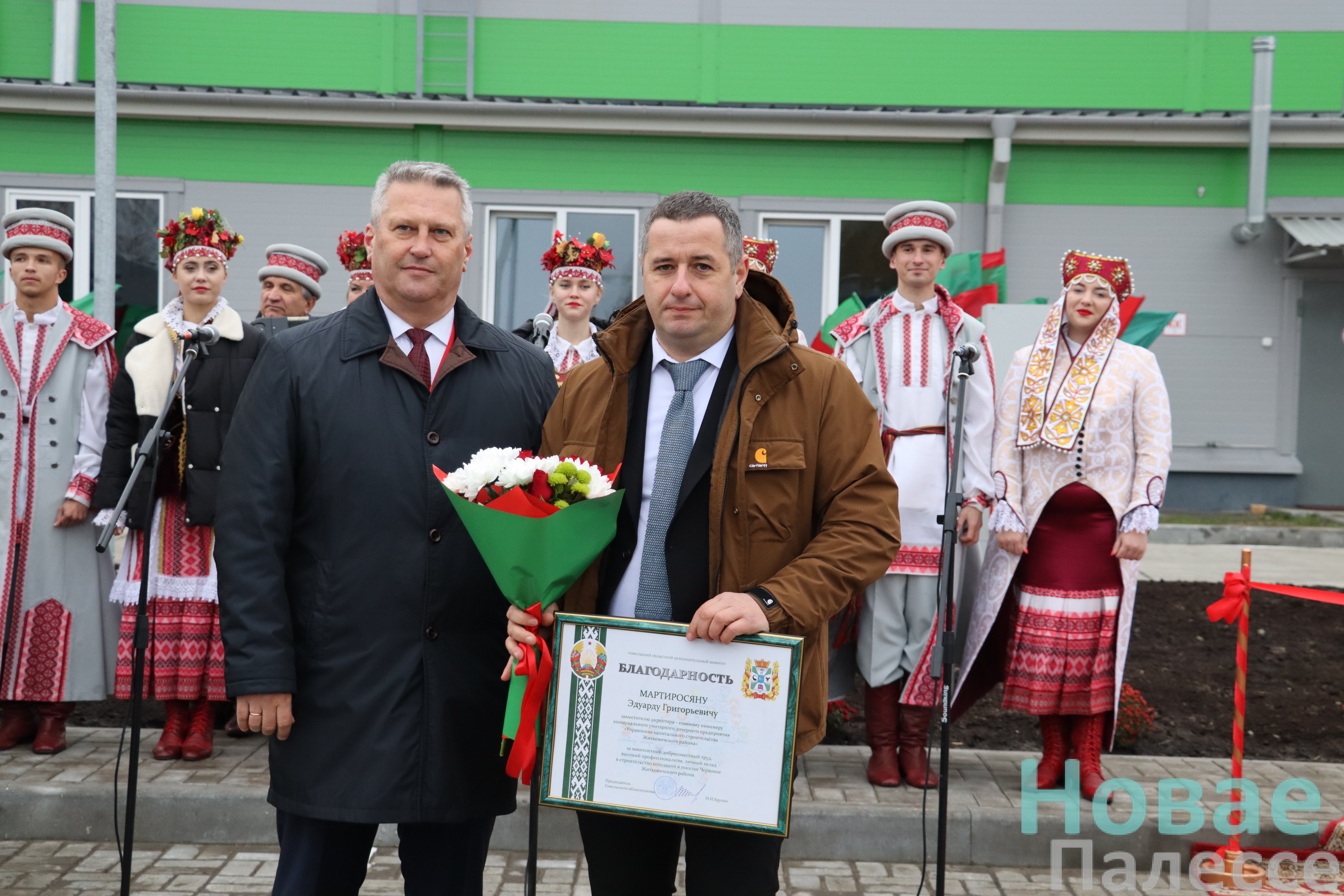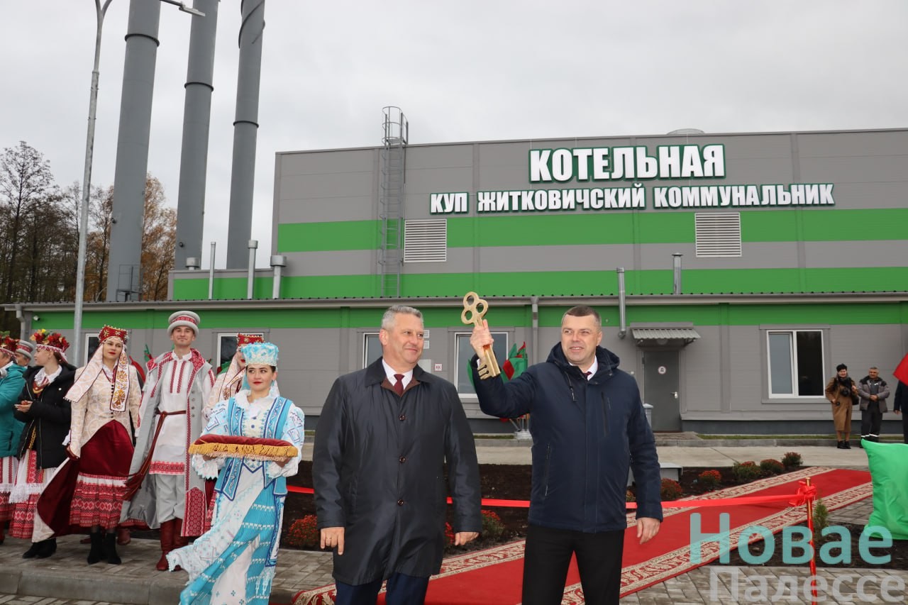 Заместитель председателя облисполкома Андрей Конюшко в торжественной обстановке передал председателю Житковичского райисполкома Николаю Пьявко символический ключ от котельной.