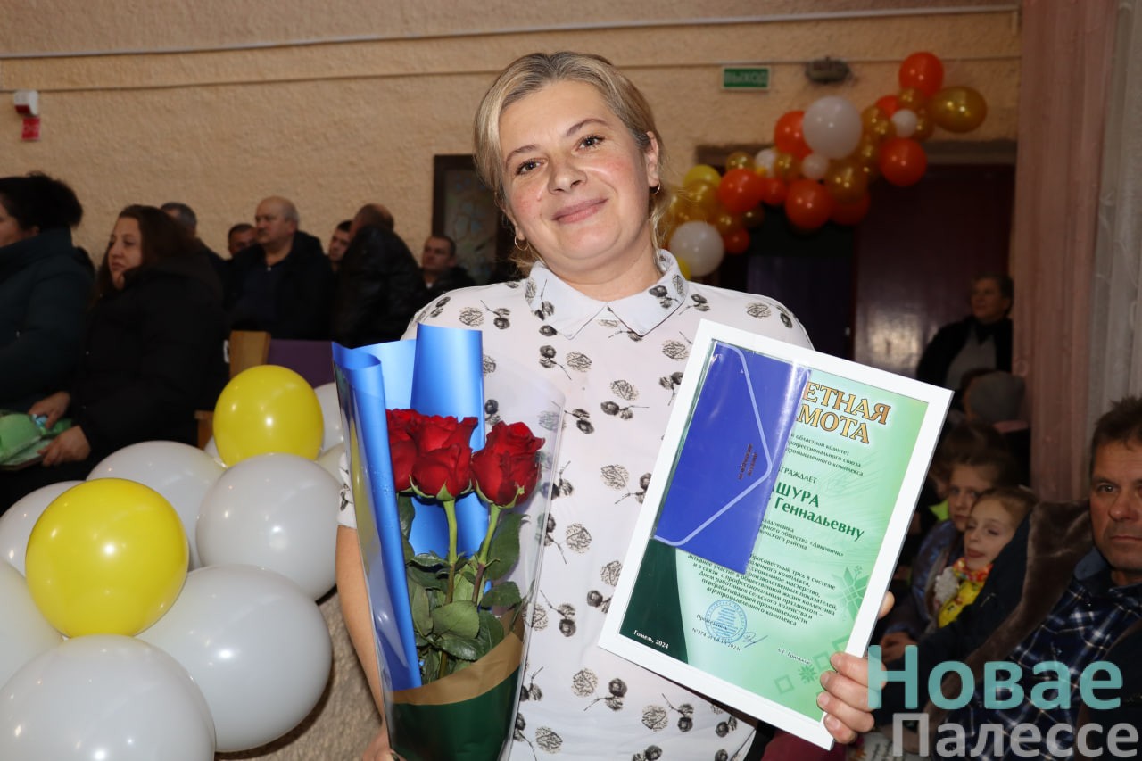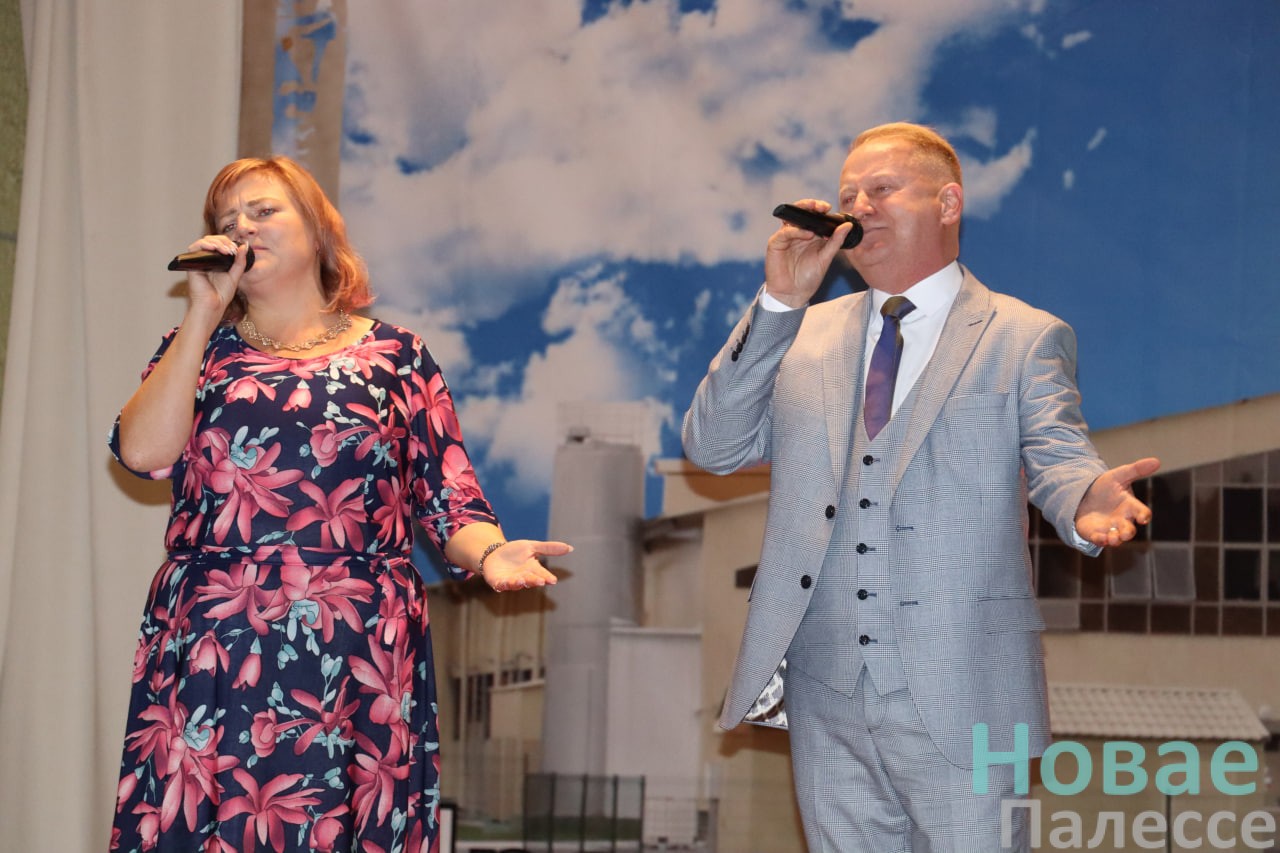 Но какой праздник без песни. Дарили музыкальные номера работники Житковичского городского центра культуры и ансамбля «Житница». По-настоящему взорвал зал дуэт руководителя – Александра Барышникова и директора ГЦК Марины Царикевич. Пели все. От мала до велика. А завершающим аккордом стало выступление белорусской певицы Елены Гришаевой.