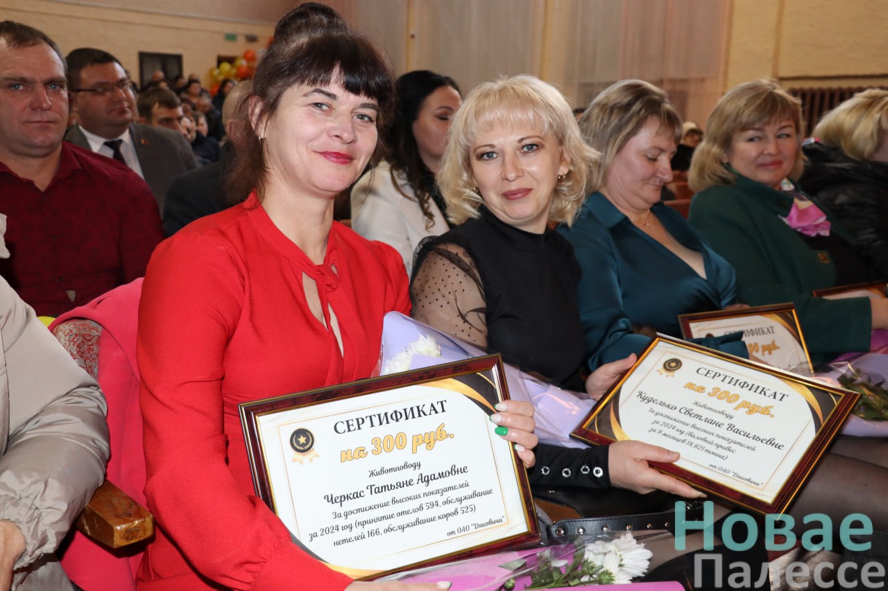 Для примера, за девять месяцев этого года операторы машинного доения Мария Абибок, Алина Купрацевич и Татьяна Тимощеня, получили высокий валовый надой молока – 1001,913 тонны на троих. А трактористы-машинисты Александр Макаревич, Александр Торчик и Сергей Охотенко заготовили более 77000 тонн кормов за такой же период. К слову, третьему из указанных и вручили ключи от новенького трактора.
