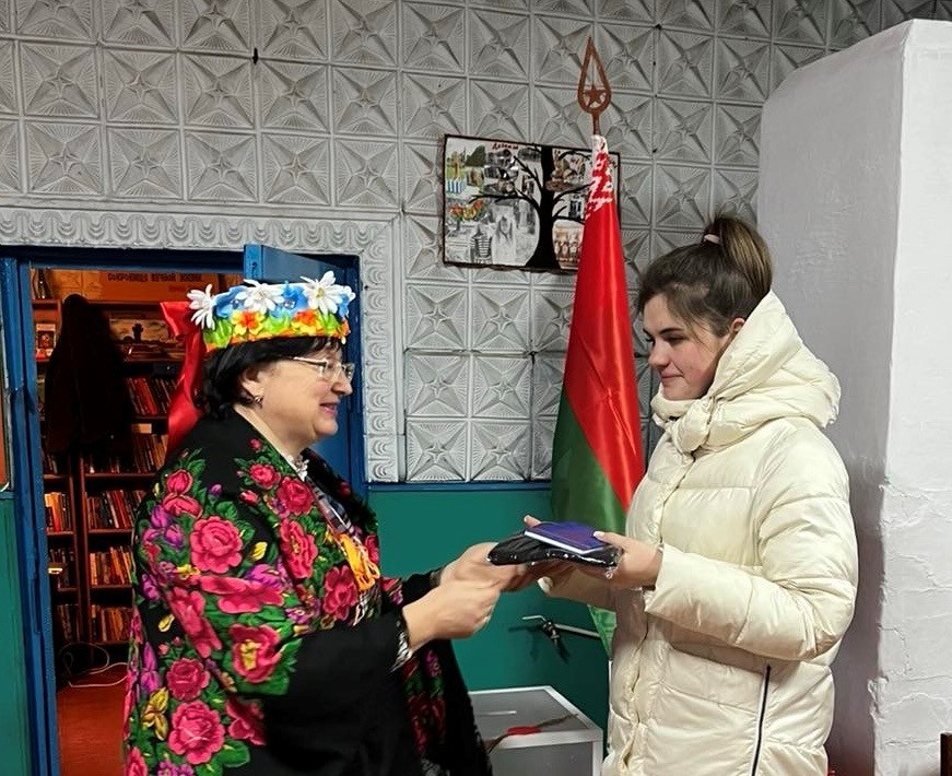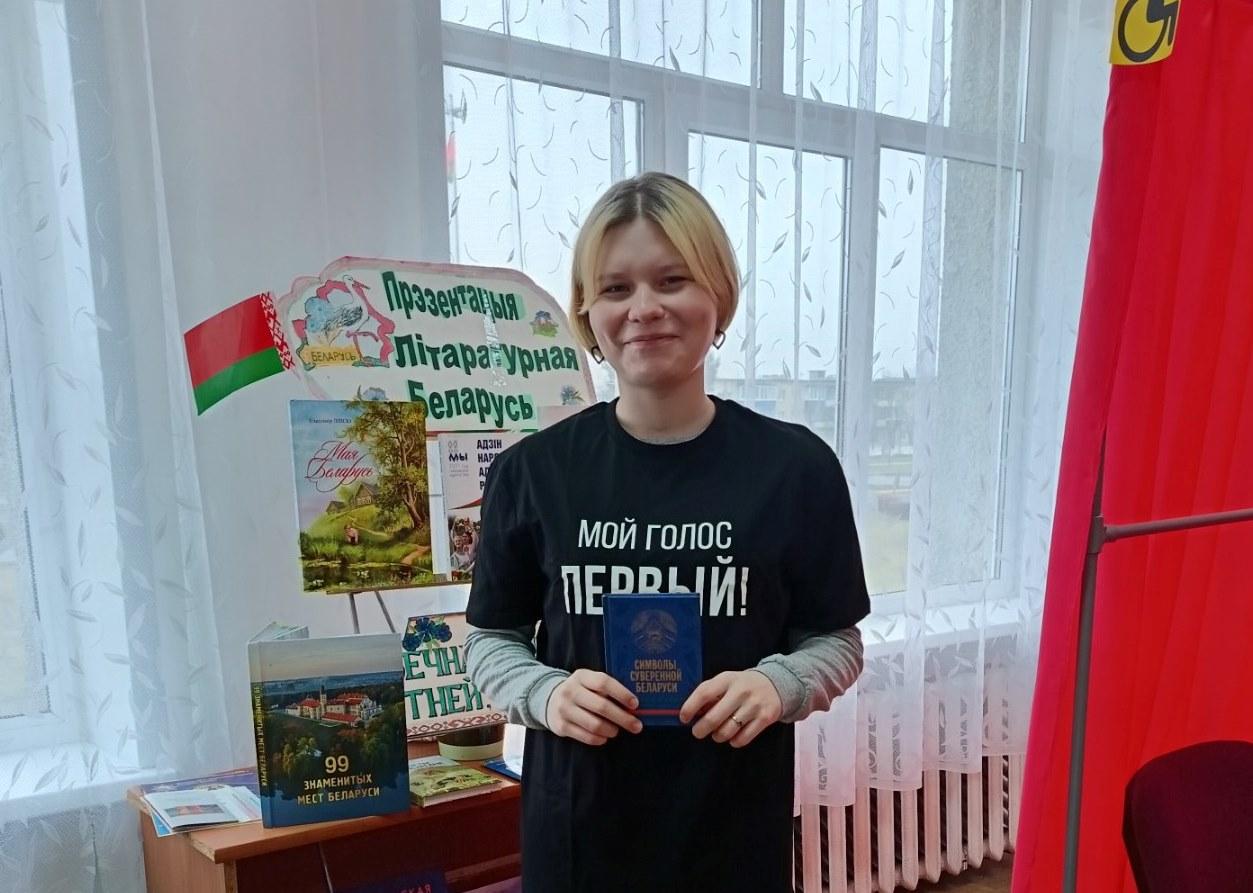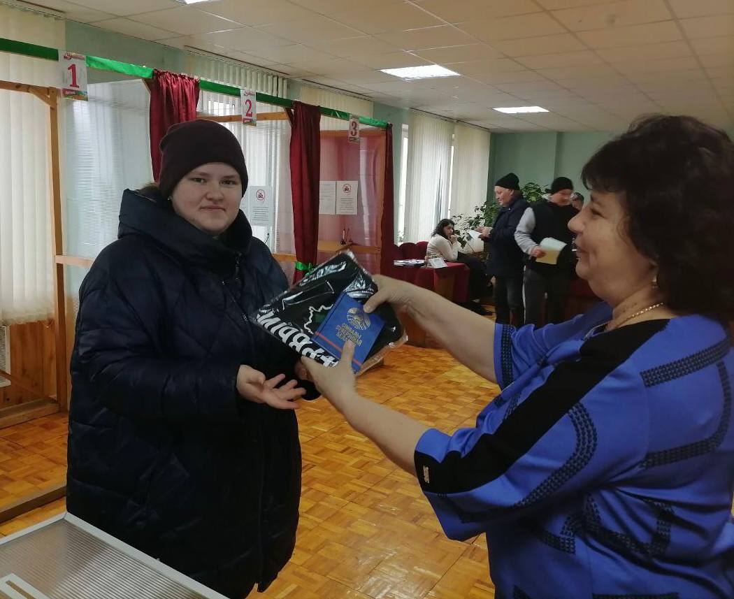 Такой же презент вручили и на дебютном выборе Янине Мацкевич в Червоном, кстати, здесь трое молодых людей голосуют впервые. Янина – студентка медицинского колледжа, голосовала за бесплатное лечение в больницах, социальные гарантии молодёжи и гарантированное трудоустройство.