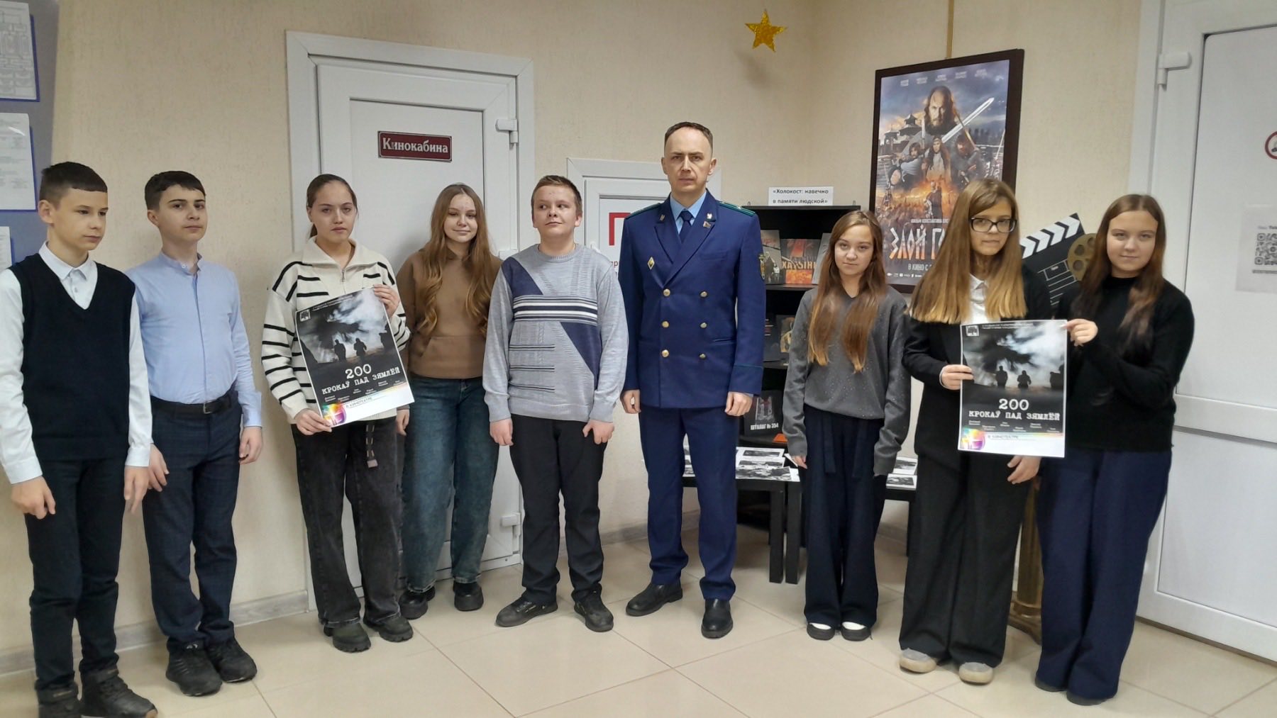 Перед началом фильма прокурор Житковичского района Игорь Артеменко рассказал ребятам о проведенной работе в рамках расследования уголовного дела о геноциде белорусского народа в годы Великой Отечественной войны и послевоенный период. Также у зрителей была возможность ознакомиться с фотоматериалами и документами о зверствах немецких оккупантов над мирным населением Житковичского района в годы войны.