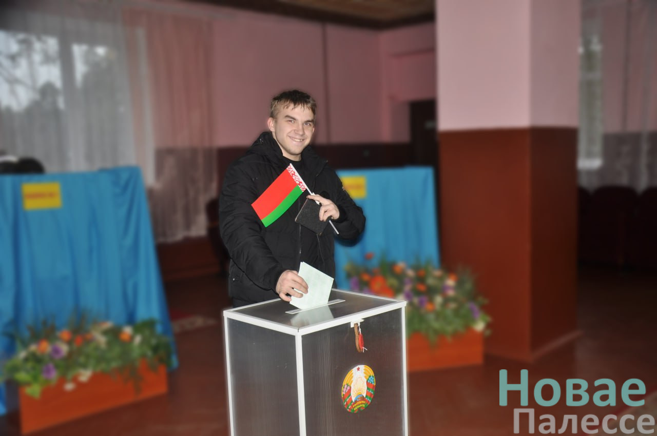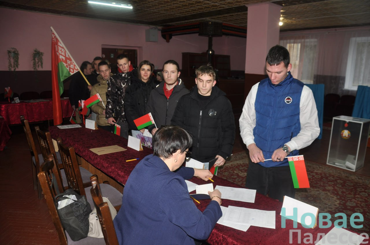 В торжественной обстановке учащимся, которые впервые сегодня воспользовались своим электоральным правом, вручили сувенир — книгу «Сімвалы суверэннай Беларусі».