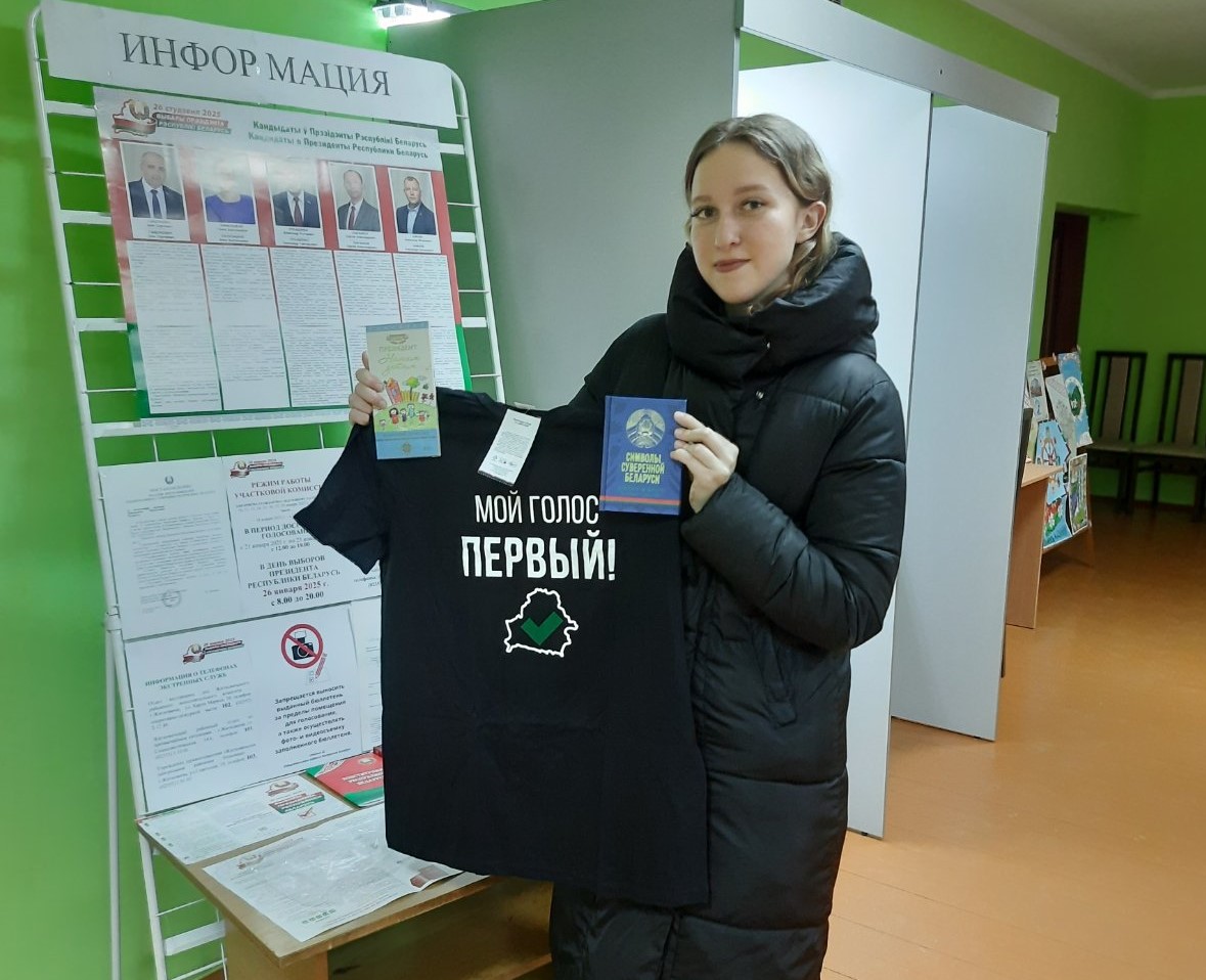 — Вместе со всей страной выбираем президента, — отмечает Татьяна. — на память останется приятный презент с логотипом.