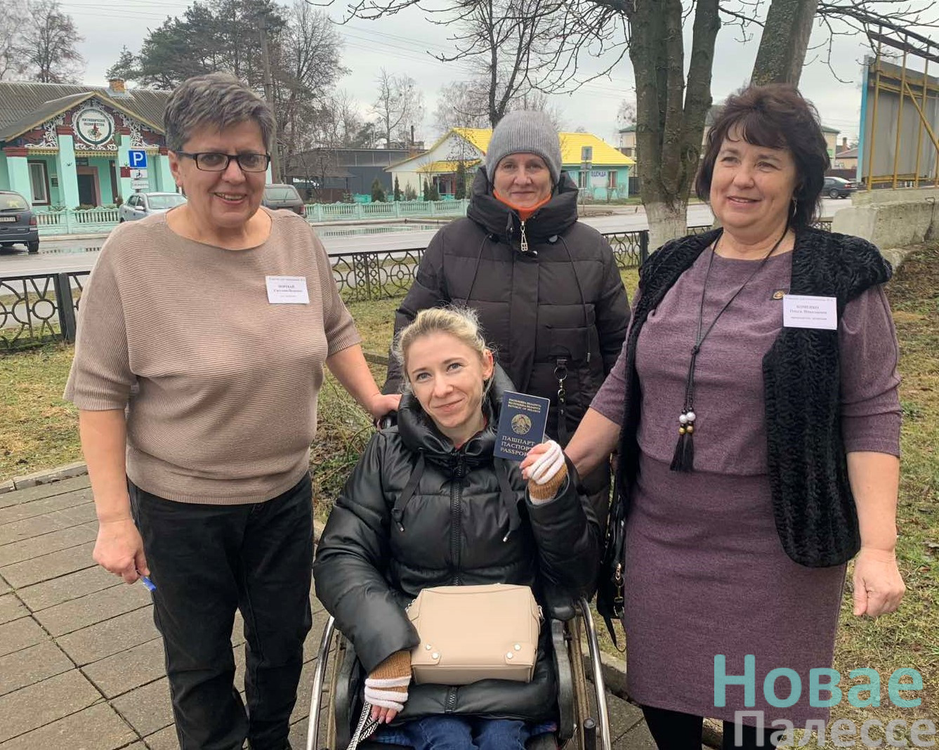 Сюда приехала вместе с мамой Любовью. Однако добраться к кабине для голосования, соблюдая все условия приватности, девушке помогли члены комиссии.