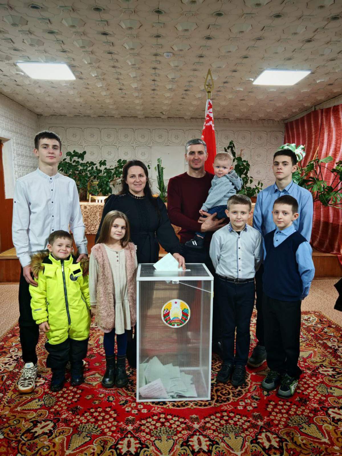 Многодетная семья Михаил и Марина Ярмольчик в первый день досрочного голосования в Ленине проявили гражданскую позицию и пришли на избирательный участок  дружным составом.