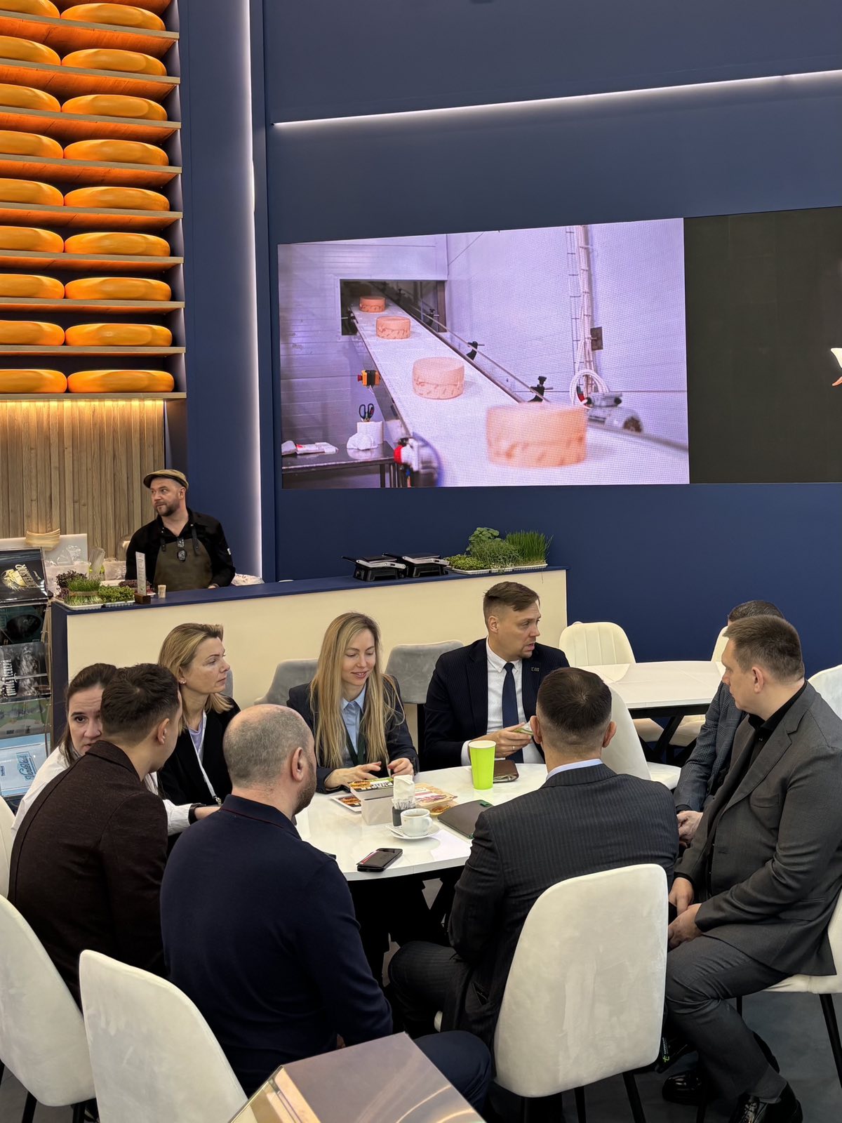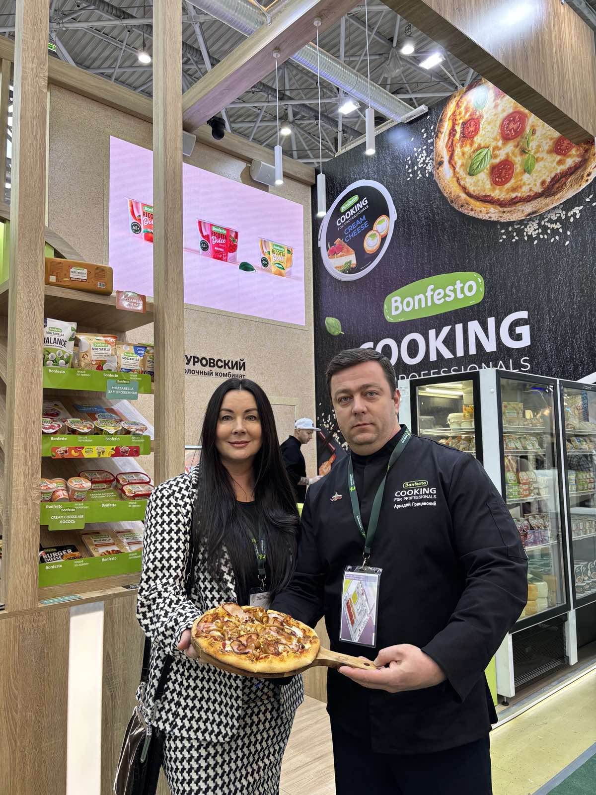 Внимание партнёров и госте привлекли новые виды продукции Они лишь появятся на прилавках в первом полугодии в ассортименте HoReCa и ритейла: слайсированные сыры Bonfesto и Bonfesto Cooking, Mozzarella Balance Bonfesto – с пониженной жирностью и повышенным содержанием белка, кремчиз Bonfesto «Овощи гриль», воздушный кремчиз Bonfesto «Со вкусом лосося».