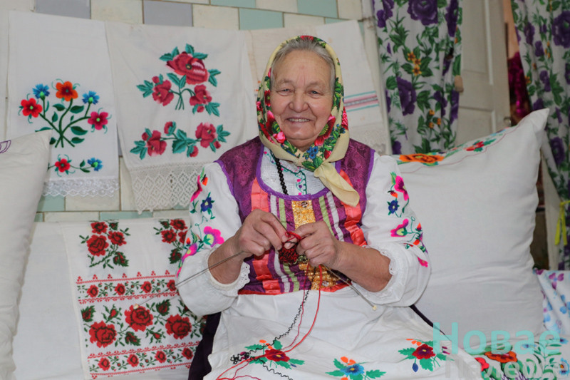 – Вышывала са школьных гадоў, – деманстрыруе расквечаныя іголкаю падушкі, рушнікі і просціны Ніна Андрэеўна. – А вязаць пруткамі навучыла адна жанчына, з якой некалі ў бальніцы ляжала. Папарабіла шкарпэтак дзецям. Пакуль апошняму звяжу, першы ўжо пяты папрацірае.