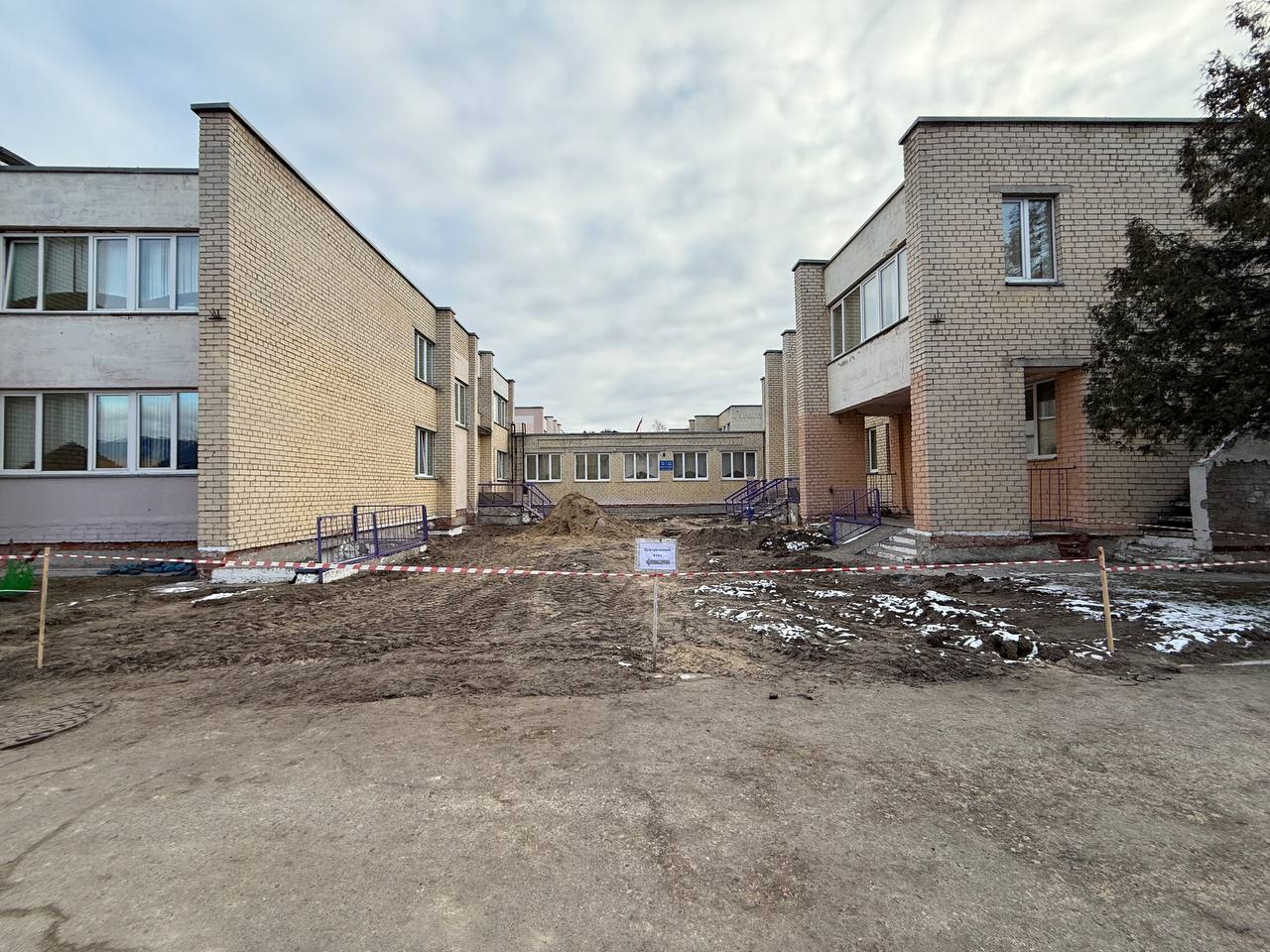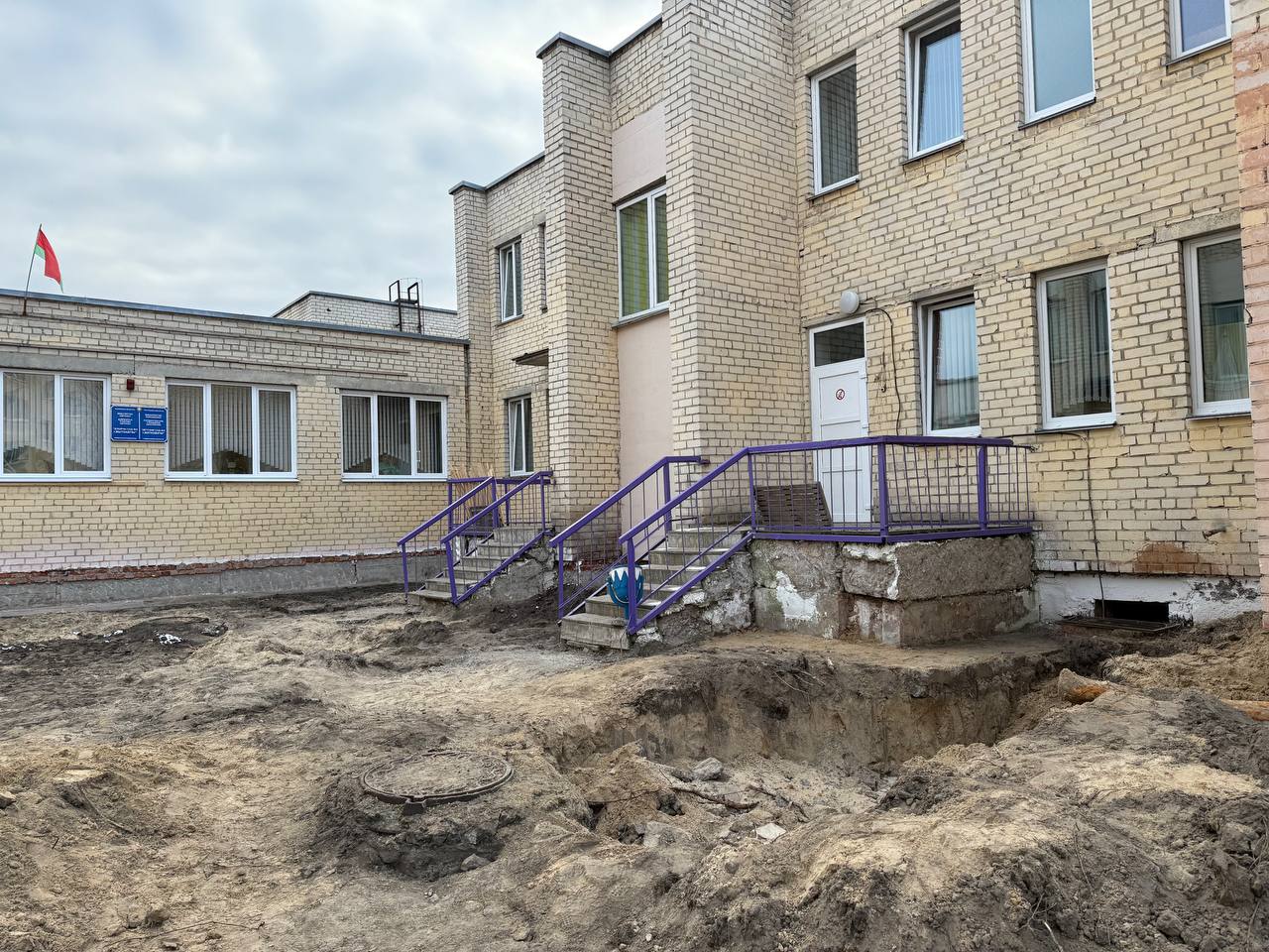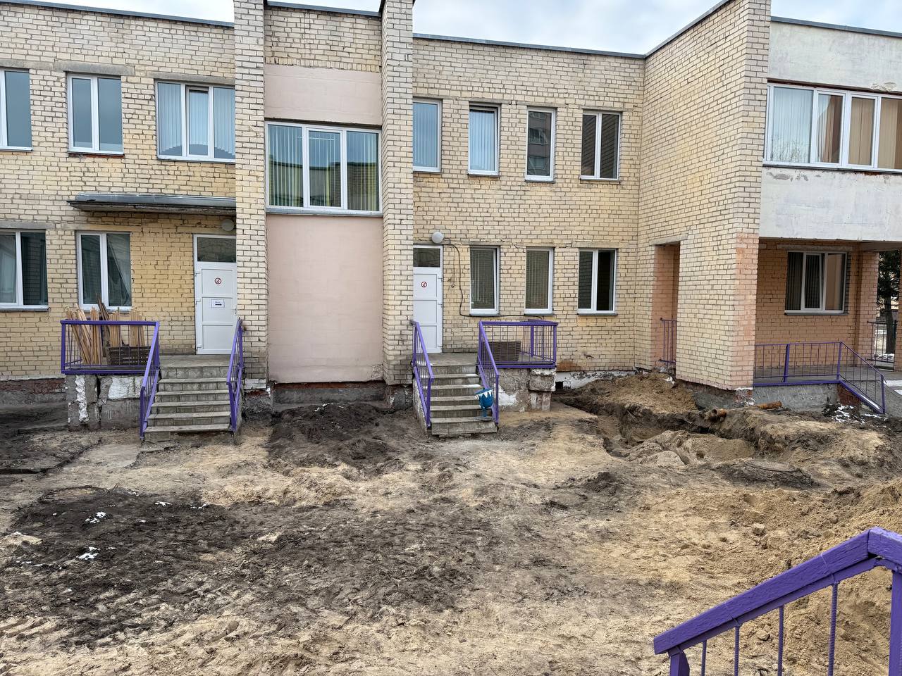 Учреждение приступило к капитальному обновлению территории входа в здание. Как рассказала заведующая Елена Авдейчик, сейчас ведутся подготовительные работы. После них будет сделана новая отмостка, отштукатурен цоколь и уложена тротуарная плитка.