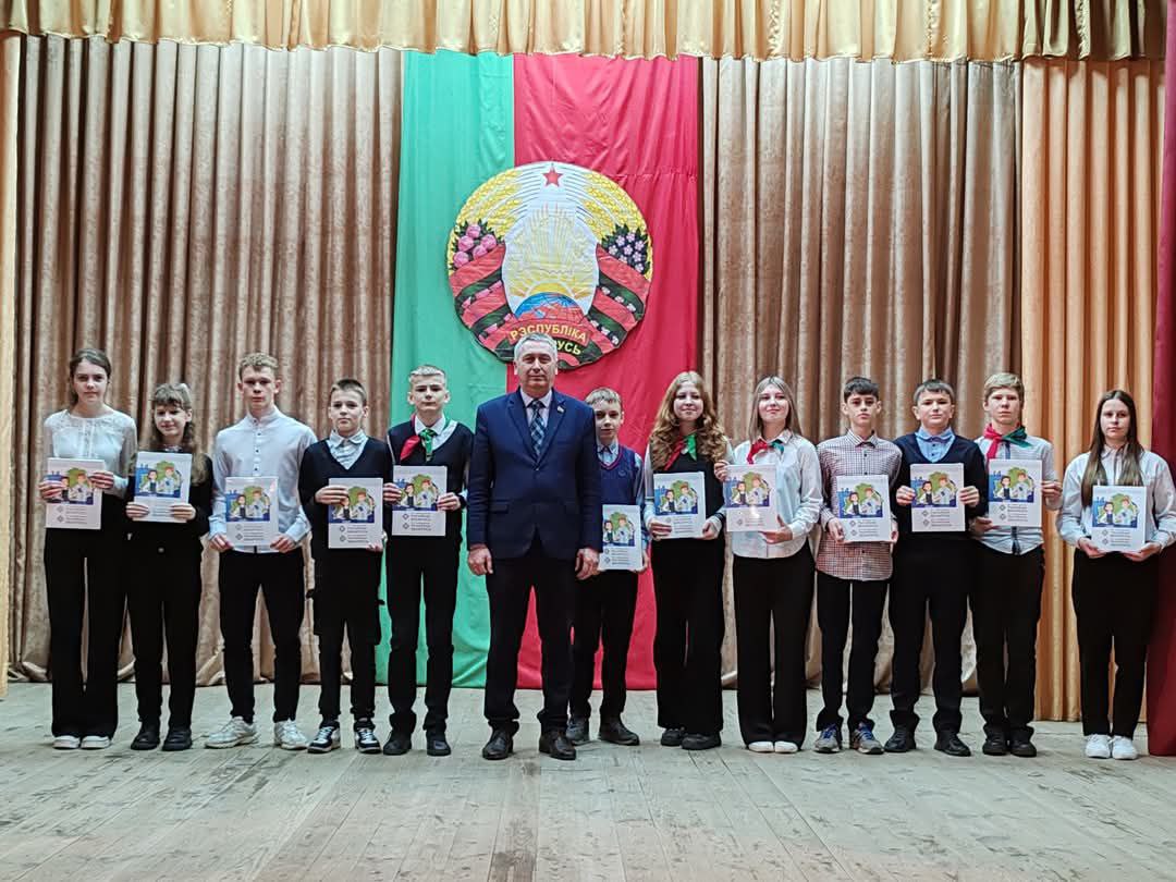Ігар Леанідавіч уручыў вучням, якія дасягнулі 14-цігадовага ўзросту, падарунак Прэзідэнта Рэспублікі Беларусь А. Р. Лукашэнкі – кнігу «Я — грамадзянін Рэспублікі Беларусь». Пры гэтым ганаровы госць адзначыў, што 14 гадоў – асаблівы ўзрост, час станавіцца дарослым, паўнапраўным грамадзянінам сваёй краіны. А быць грамадзянінам – гэта высокі гонар і адказнасць перад грамадствам і самім сабой. Адказная вучоба, павага да бацькоў і сям’і, добразычлівыя ўзаемаадносіны – тое важнае і неабходнае, што кожны з вучняў можа зрабіць ужо сёння.