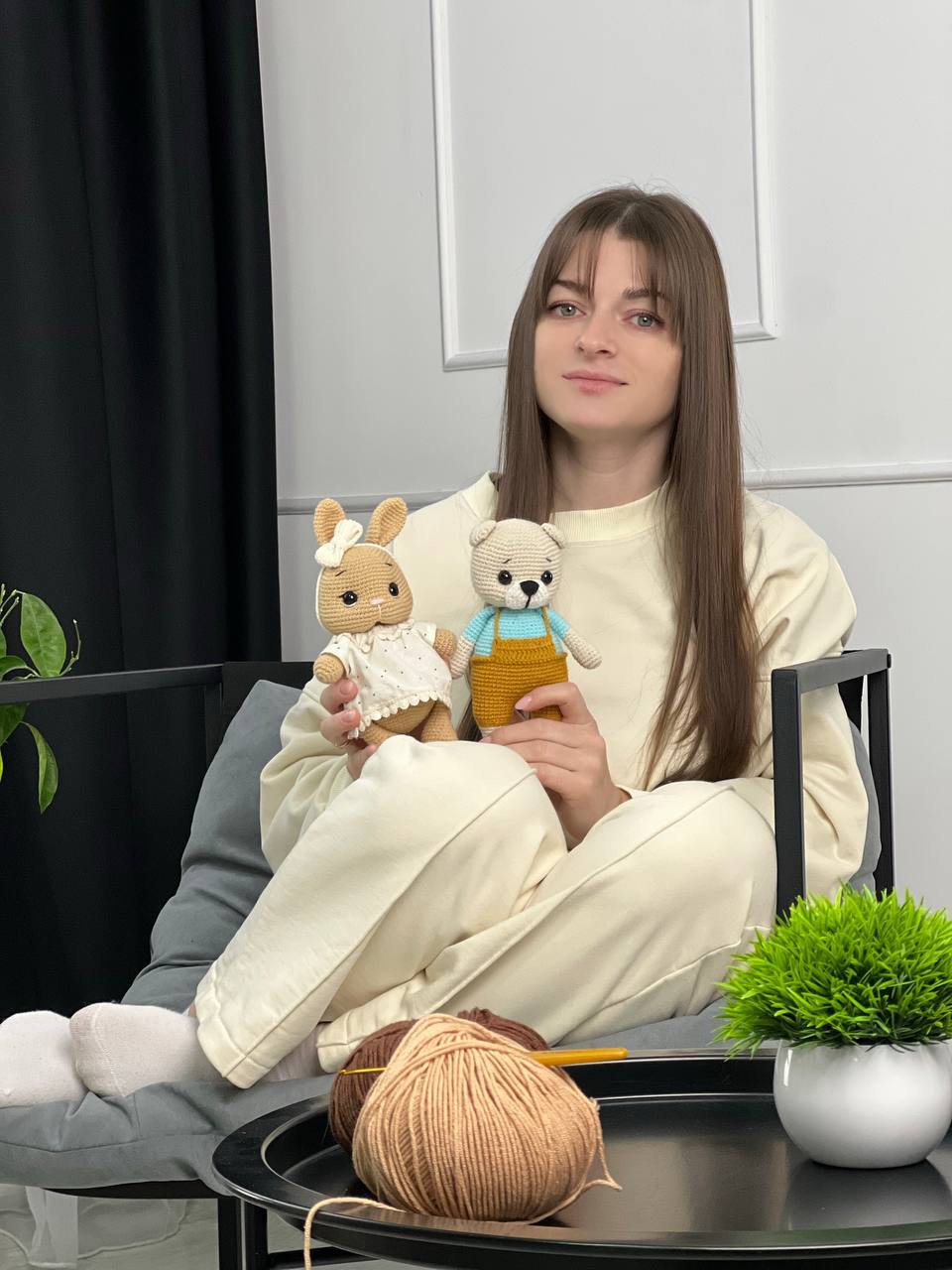 Кроме владения крючком, Алёна Кравцова умеет и шить. На интервью она пришла в модном спортивном костюме собственного производства. Чтобы вдохновлять на творчество других, молодая женщина завела инстаграм-аккаунт, где демонстрирует и процесс рождения игрушек, и его обаятельный результат.