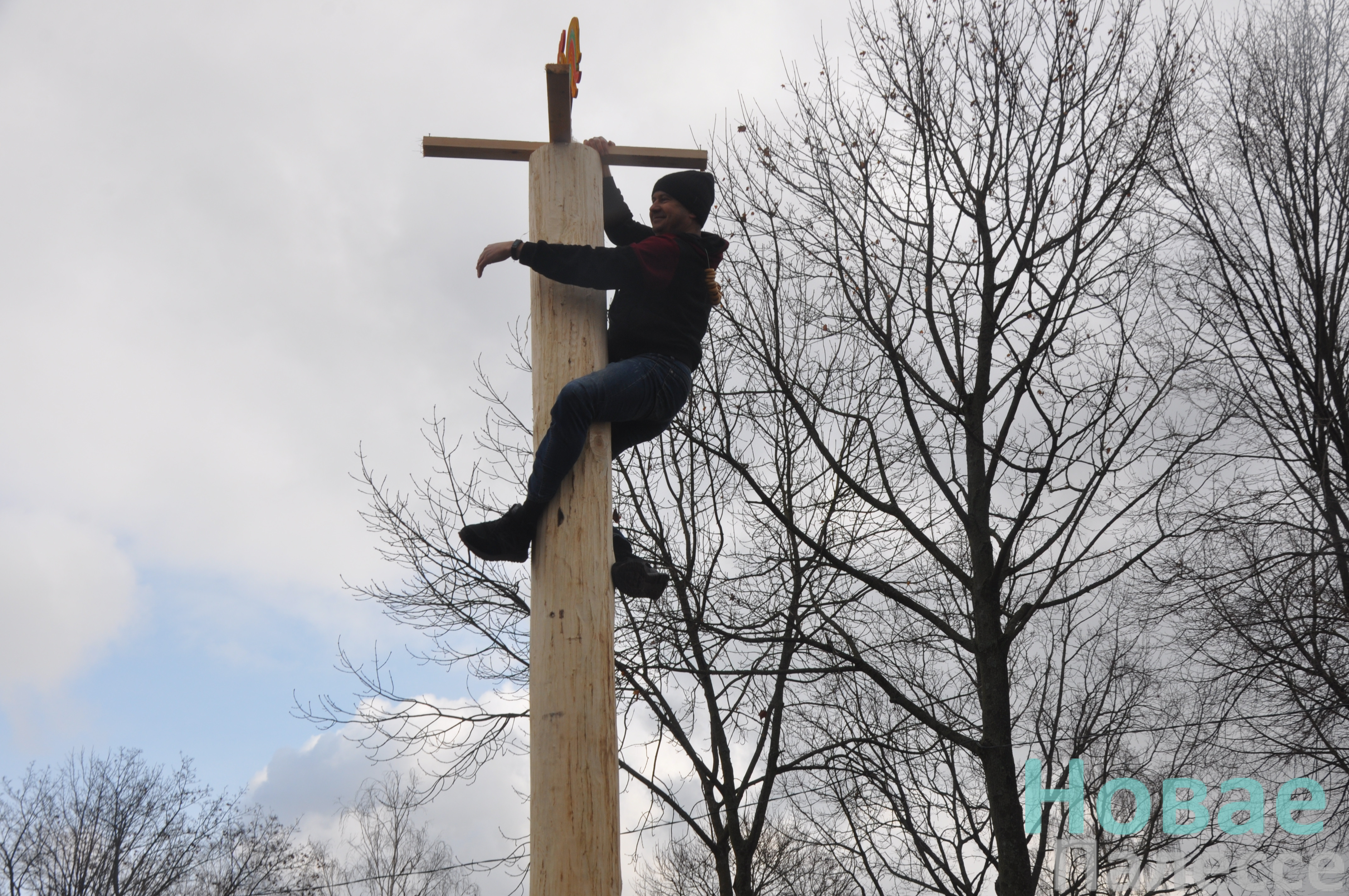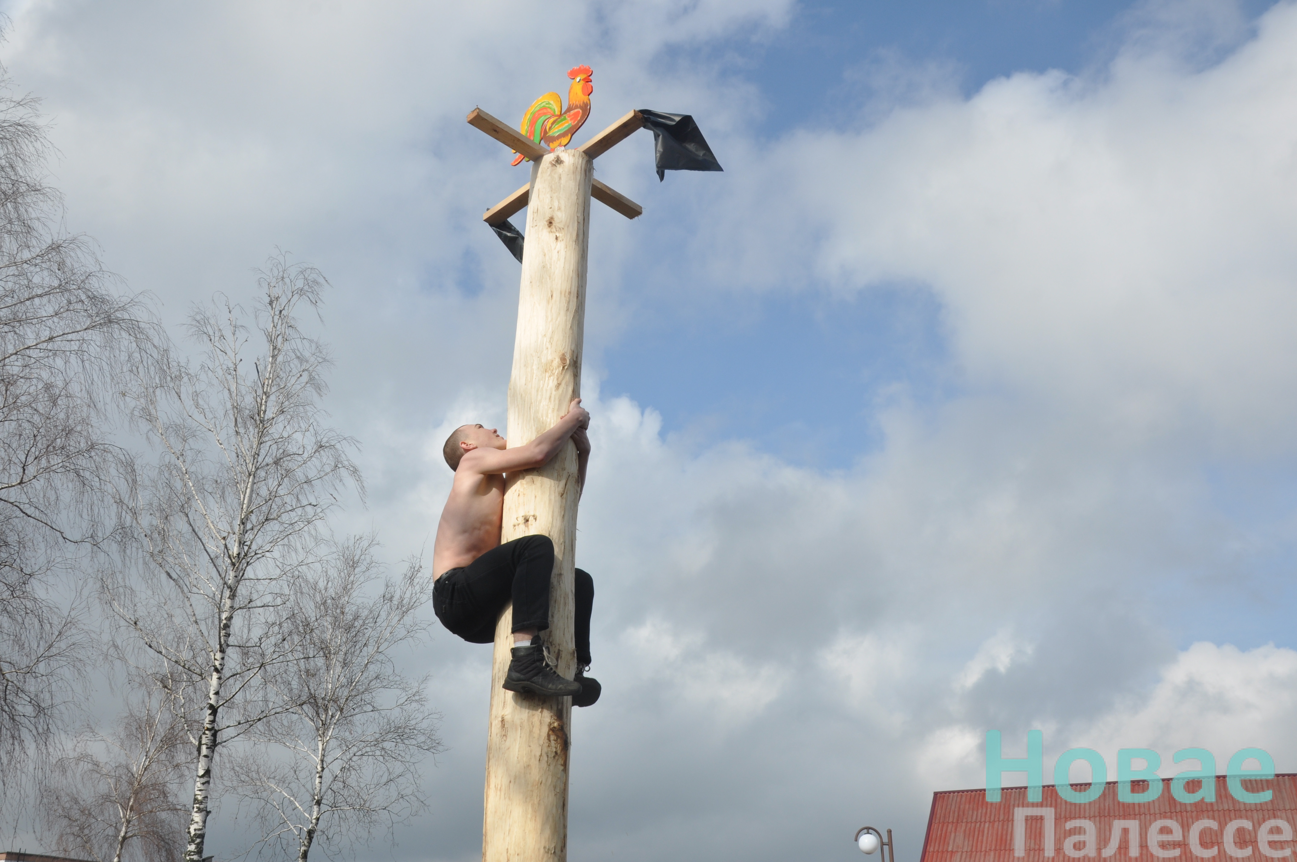 А для смелых и сильных подготовили масленичный столб.