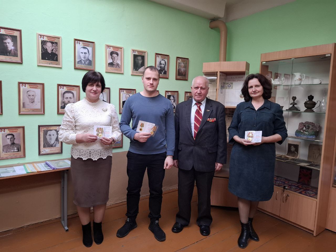 Член БОО «Ветераны военной разведки», краевед Михаил Хильман по поручению Министерства обороны Республики Беларусь и начальника ГРУ вручил юбилейные медали «80 лет освобождения Беларуси от немецко-фашистских захватчиков» педагогам СШ №3 г. Житковичи им. И.Н. Банова.