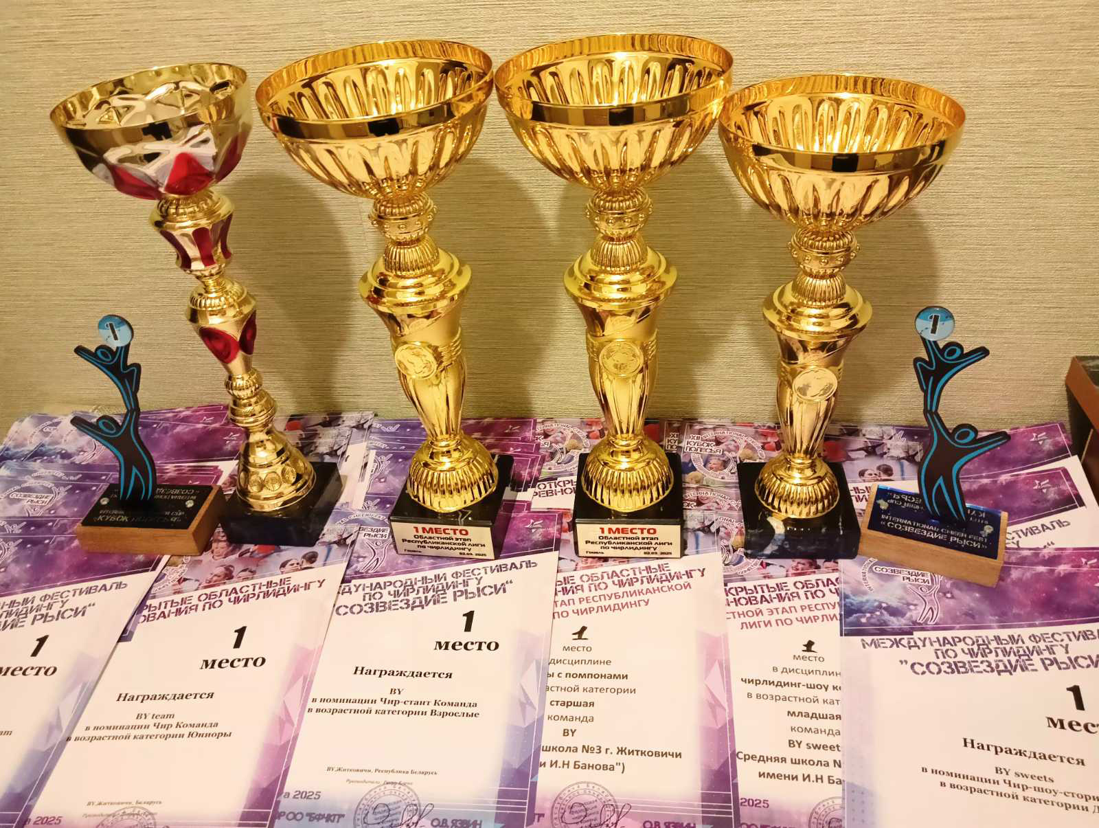 А вот какие впечатляющие результаты команды СШ N3 г.Житковичи им. И.Н. Банова на открытых областных соревнованиях по чирлидингу и обласном этапе школьной лиги по чирлидингу.