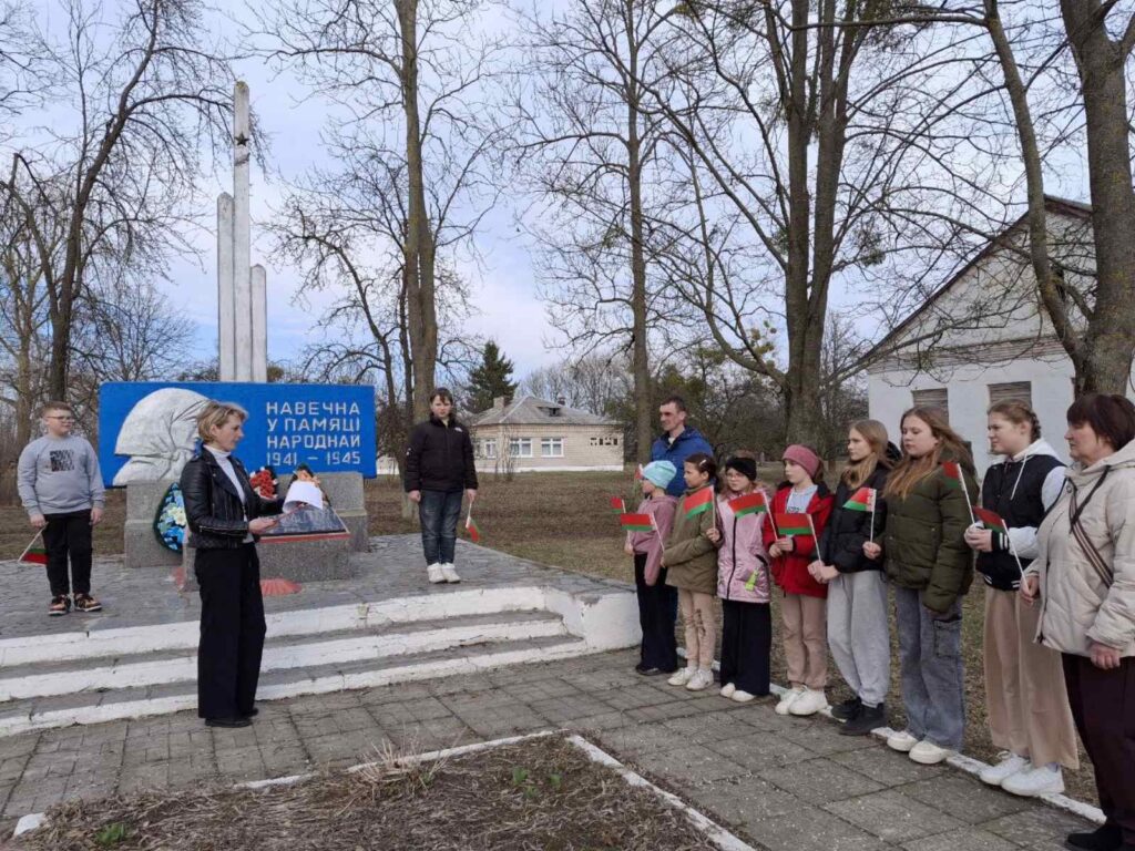 В память о жертвах Великой Отечественной войны участники мероприятия возложили цветы к памятнику советским воинам и партизанам в этом населенном пункте, а также почтили память погибших земляков минутой молчания.
