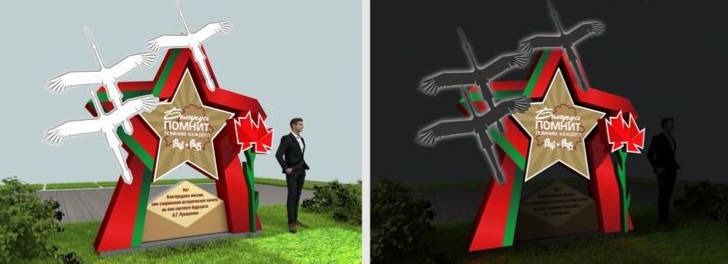 Возле военного комиссариата начались подготовительные работы для монтажа архитектурной формы. В прилегающем к зданию сквере установят объёмную двухстороннюю звезду с внутренней подсветкой.