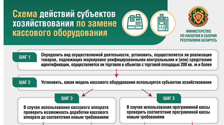 С 1 июля 2025 г. субъекты хозяйствования должны пользоваться кассовыми суммирующими аппаратами (КСА) и программными кассами, которые соответствуют новым требованиям*.Для замены (доработки под новые требования) кассового оборудования субъектам хозяйствования необходимо: