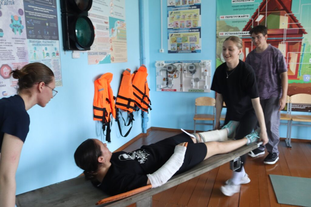 «Оказание первой доврачебной помощи». В кроссфите отряды ЮСП соревновались в физической подготовке, учились устанавливать палатки и оказывать помощь населению в условиях ЧС. Креативно подошли ребята к созданию видеороликов, посвященных пожарной безопасности. На этапе «ОБЖ» участники проверяли свои знания в области
