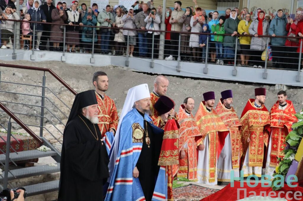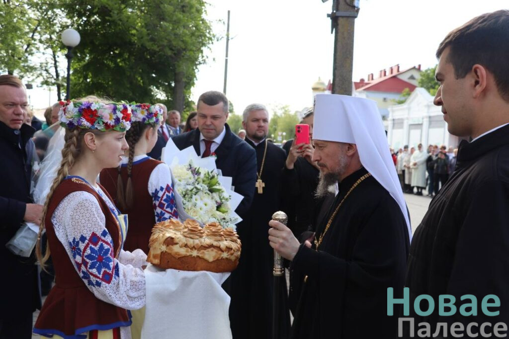 Именно отсюда крестным ходом массовая колонна проследовала к памятнику 1000-летия со дня основания Туровской епархии. Затем торжественное шествие направилось к Замковой горе для участия в праздничном богослужении. Литургия, которую возглавляет Патриарший Экзарх всея Беларуси, проходит в крипте — над фундаментом древнего собора Туровских епископов, разрушенного землетрясением в XIII веке.