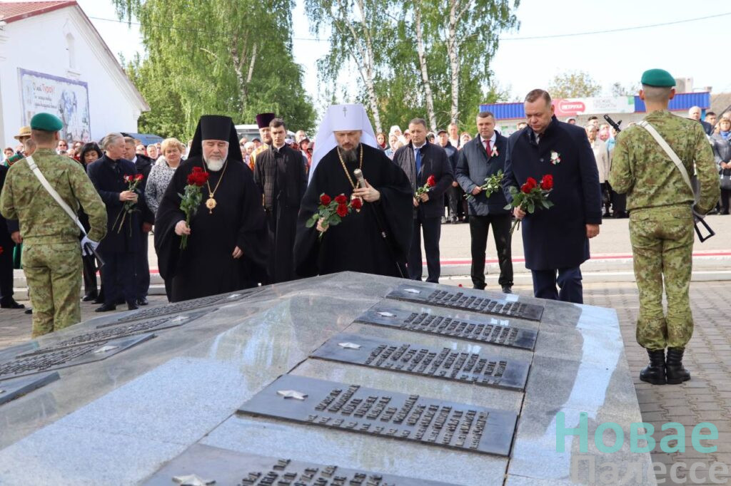 Епископат, духовенство, представители власти, во главе с заместителем председателя Гомельского облисполкома Дмитрием Алейниковым, председателем Житковичского райисполкома Николаем Пьявко, главой депутатского корпуса района Леонидом Волотовским, гости и паломники отдали дань уважения погибшим воинам Великой Отечественной войны у у памятника «Братская могила» на Красной площади.